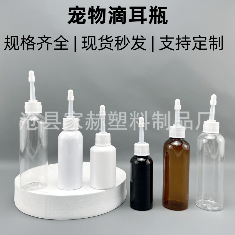 50mlペットの耳の液体の瓶の鋭い口のホースは瓶の猫の犬の清潔な洗剤の液体の瓶のpetの耳の液体の瓶をつぶします。