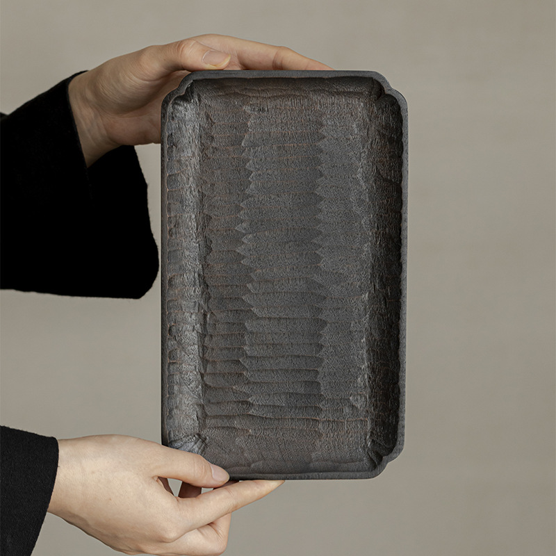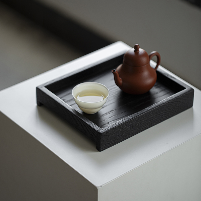草木祠白蝋木炭焼黒壺承実木小茶台日本式寂風乾泡盤茶トレー茶海