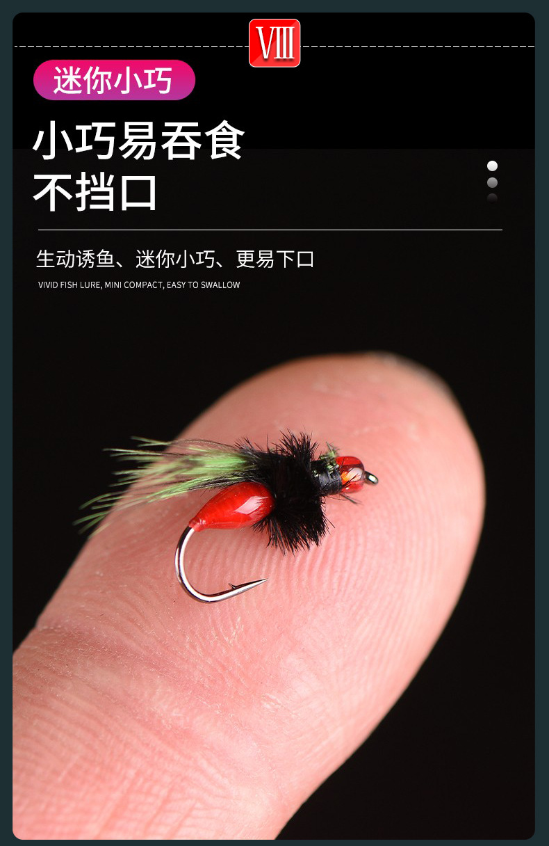 进口蓑羽仿生腹节摇蚊格里菲斯浮水飞蝇钩毒蚊路亚微物马口白条