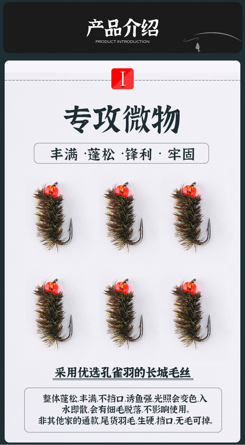 飛ハエフック裸フックナノ虫バイオニックハエ毒虫微物セット路亜偽餌白条馬口毒蚊フック