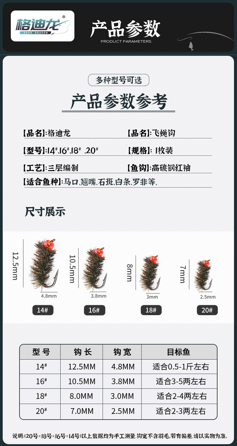 グリフィス飛ハエフック浮水飛ハエフックハエ餌釣り白条馬口ニジマス路亜餌蓑羽縛制