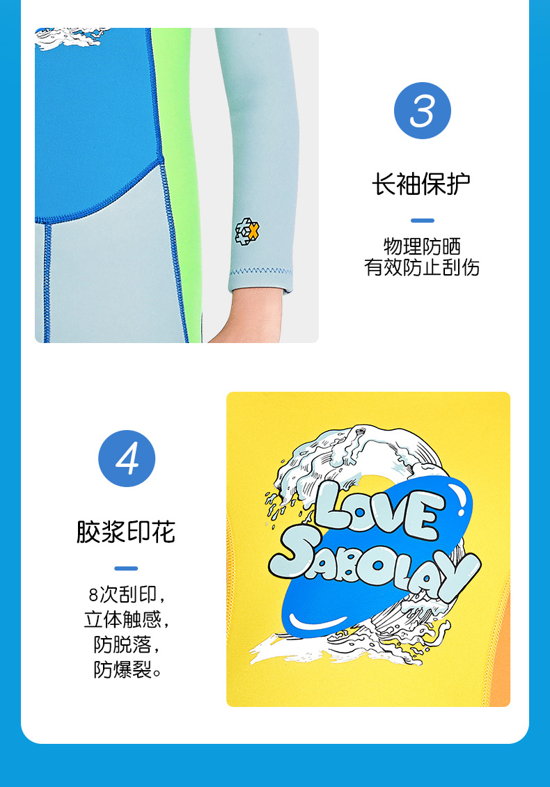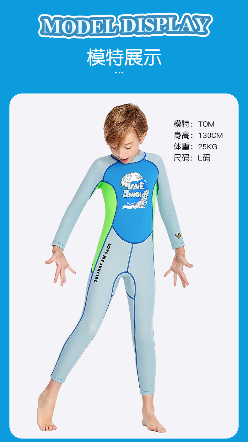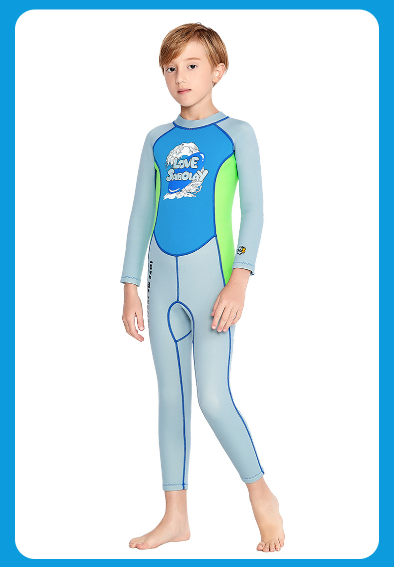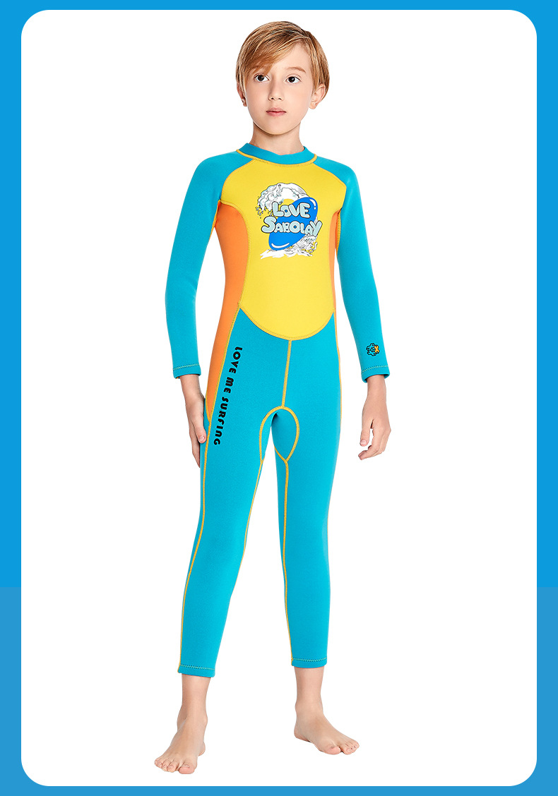 シャバオライ クロスボーダー アウトドアスポーツ 新型 子供用 2MM 厚手 ダイビングスーツ 水着 男の子 女の子 ワンピース 長袖