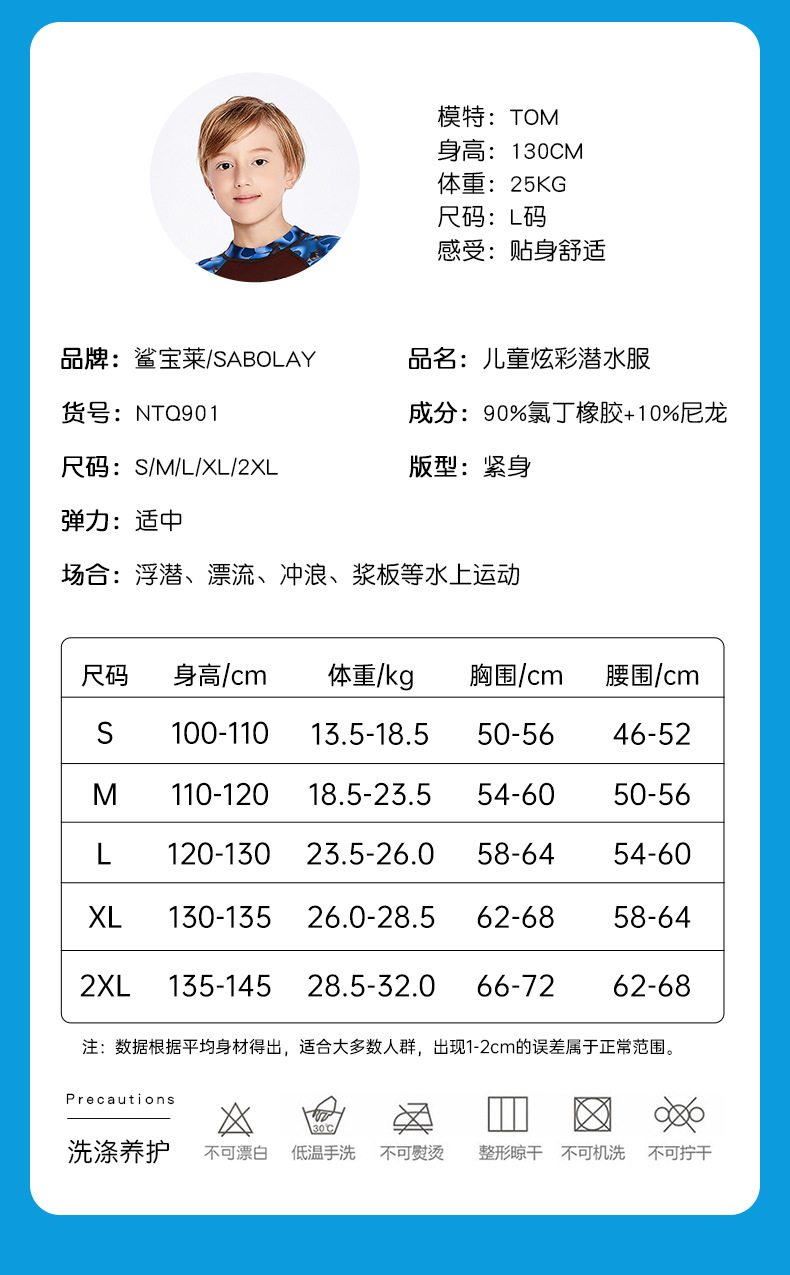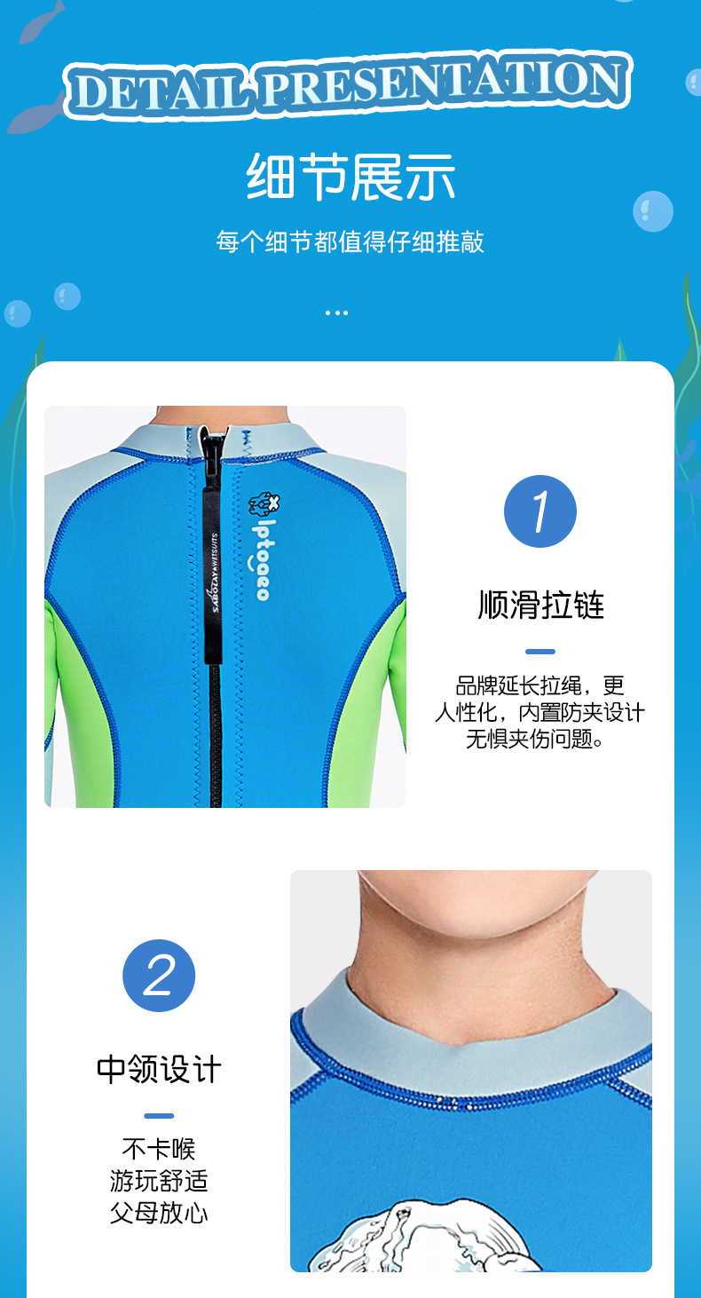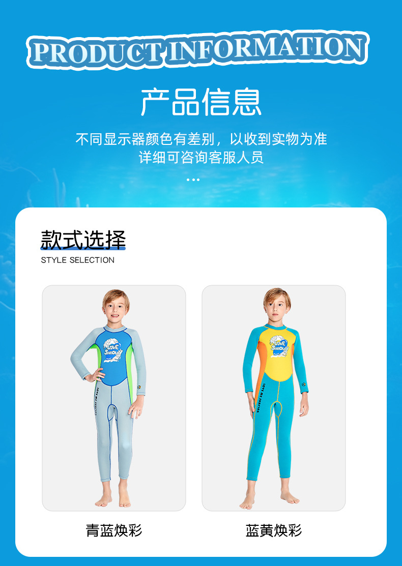 シャバオライ クロスボーダー アウトドアスポーツ 新型 子供用 2MM 厚手 ダイビングスーツ 水着 男の子 女の子 ワンピース 長袖
