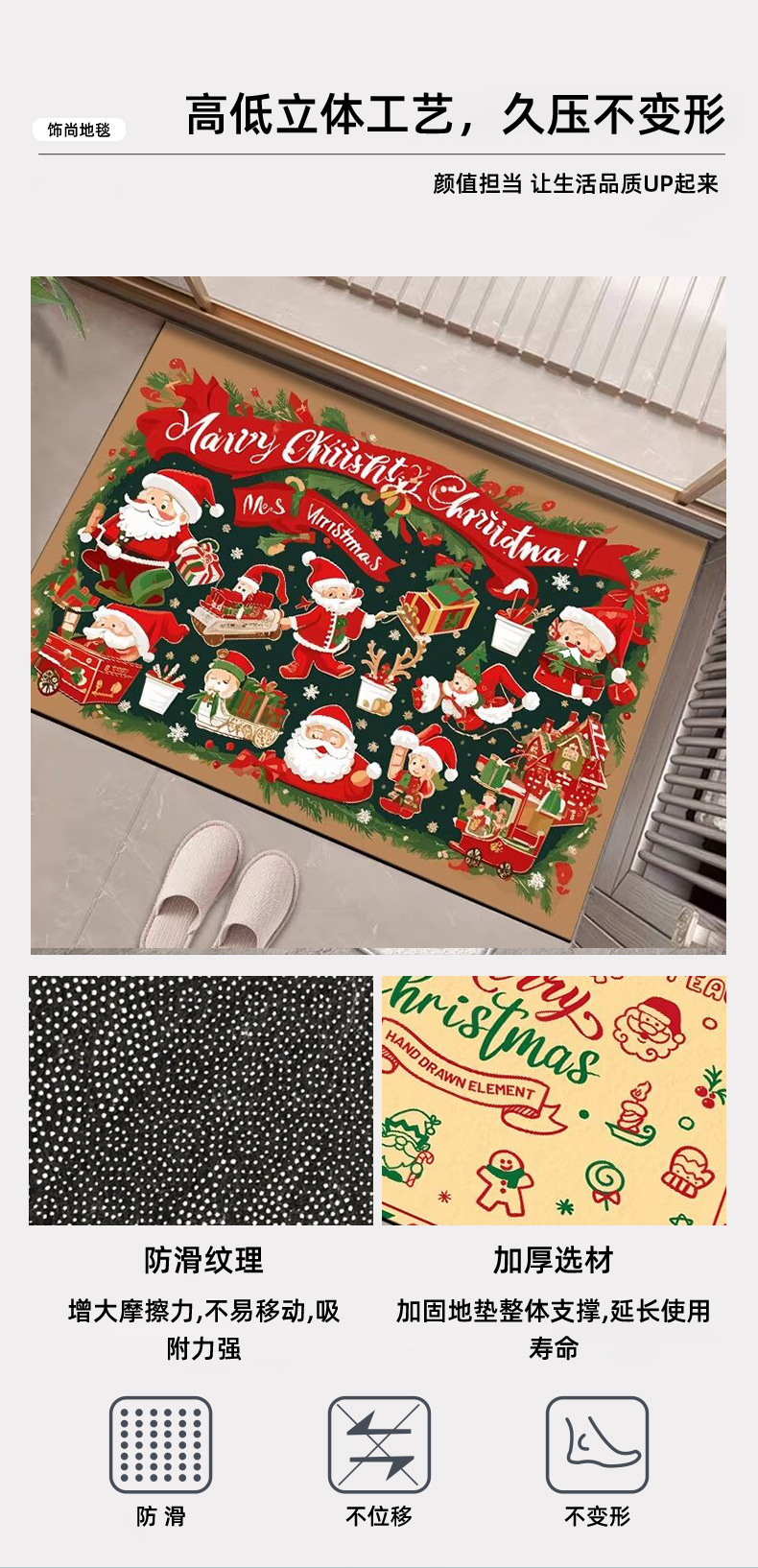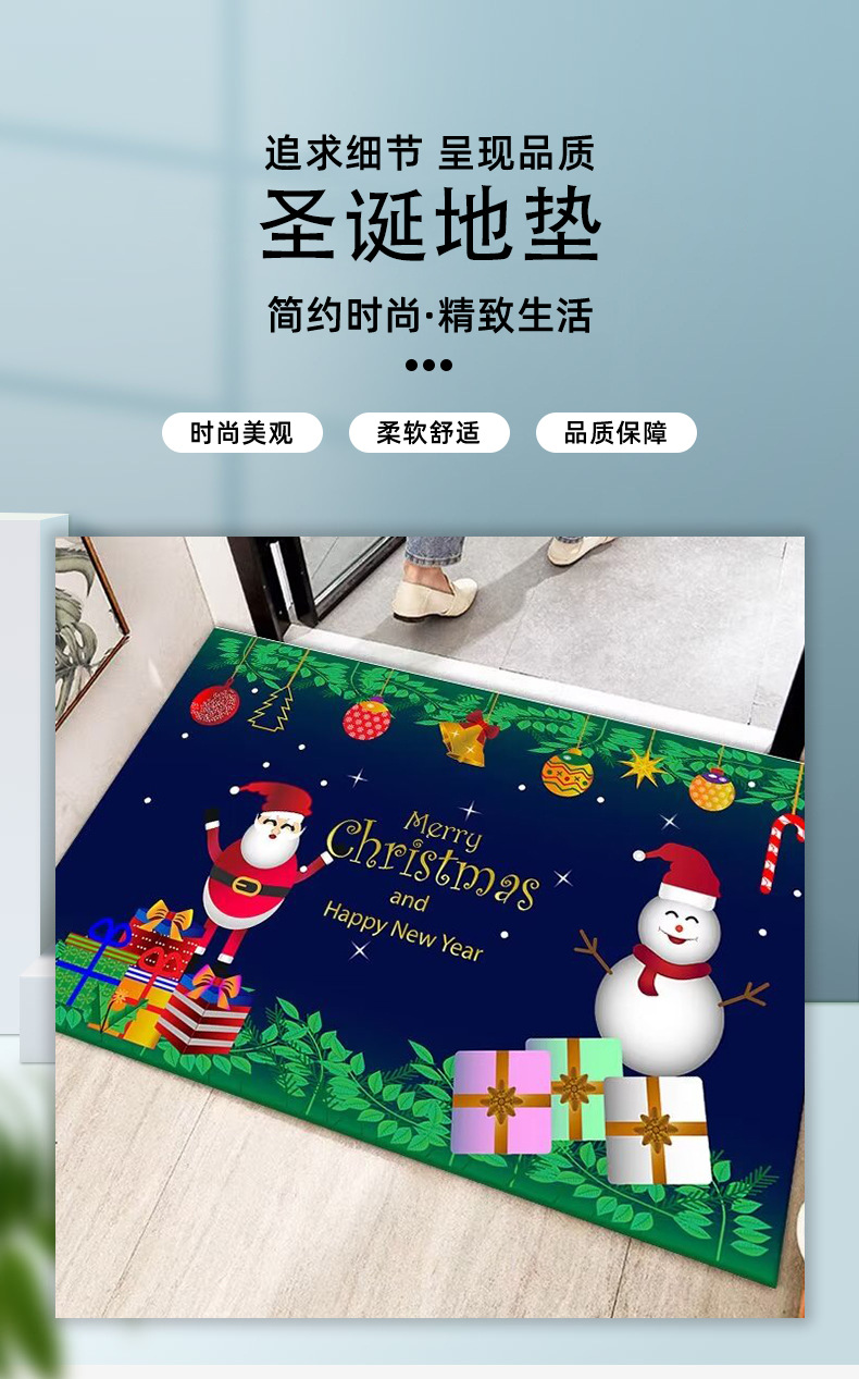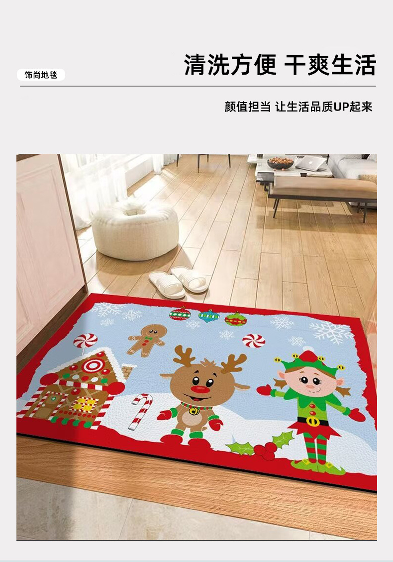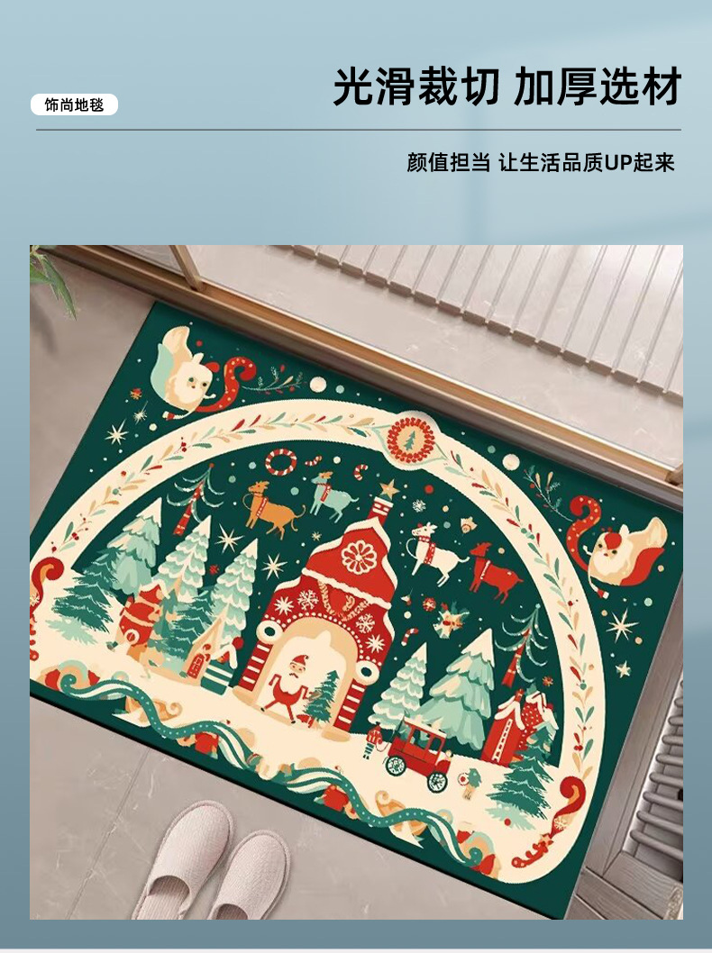 圣诞节地垫门口进门地垫入户门垫水晶绒吸水防滑耐脏圣诞地垫