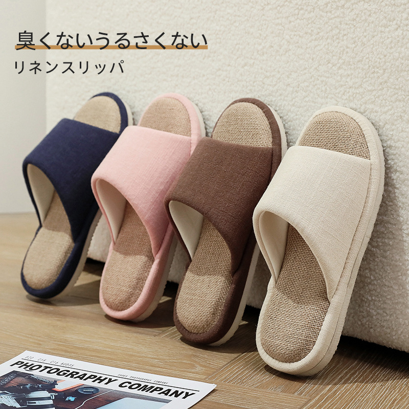 国境を越えたアマゾンの開口綿麻スリッパ男女家庭内静音木床滑り止め亜麻スリッパ四季