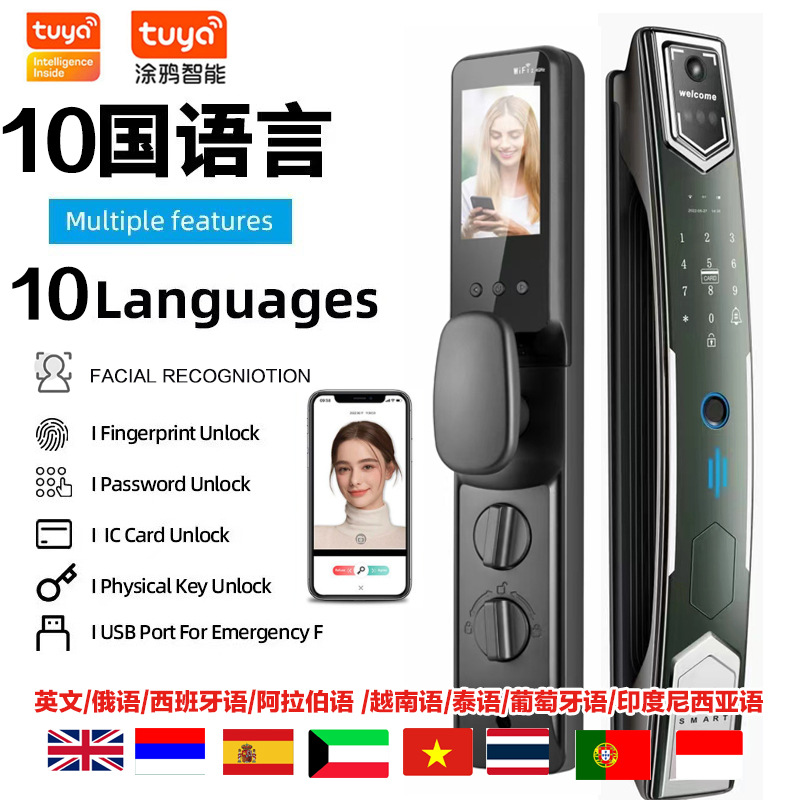 クロスボーダー落書きTuyaスマートロック顔可視全自動スマート指紋ロック家庭用ロックリモートAPPロック