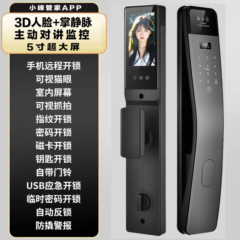 パーム静脈 3D 顔認識スマートドアロックパスワードロック指紋ロックインターホンスマートロック監視クロスボーダー Tuya