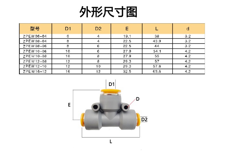 EMC億太諾継手ZPEWガス管継手変径三方ホース気動三方高圧管ワンタッチ継手