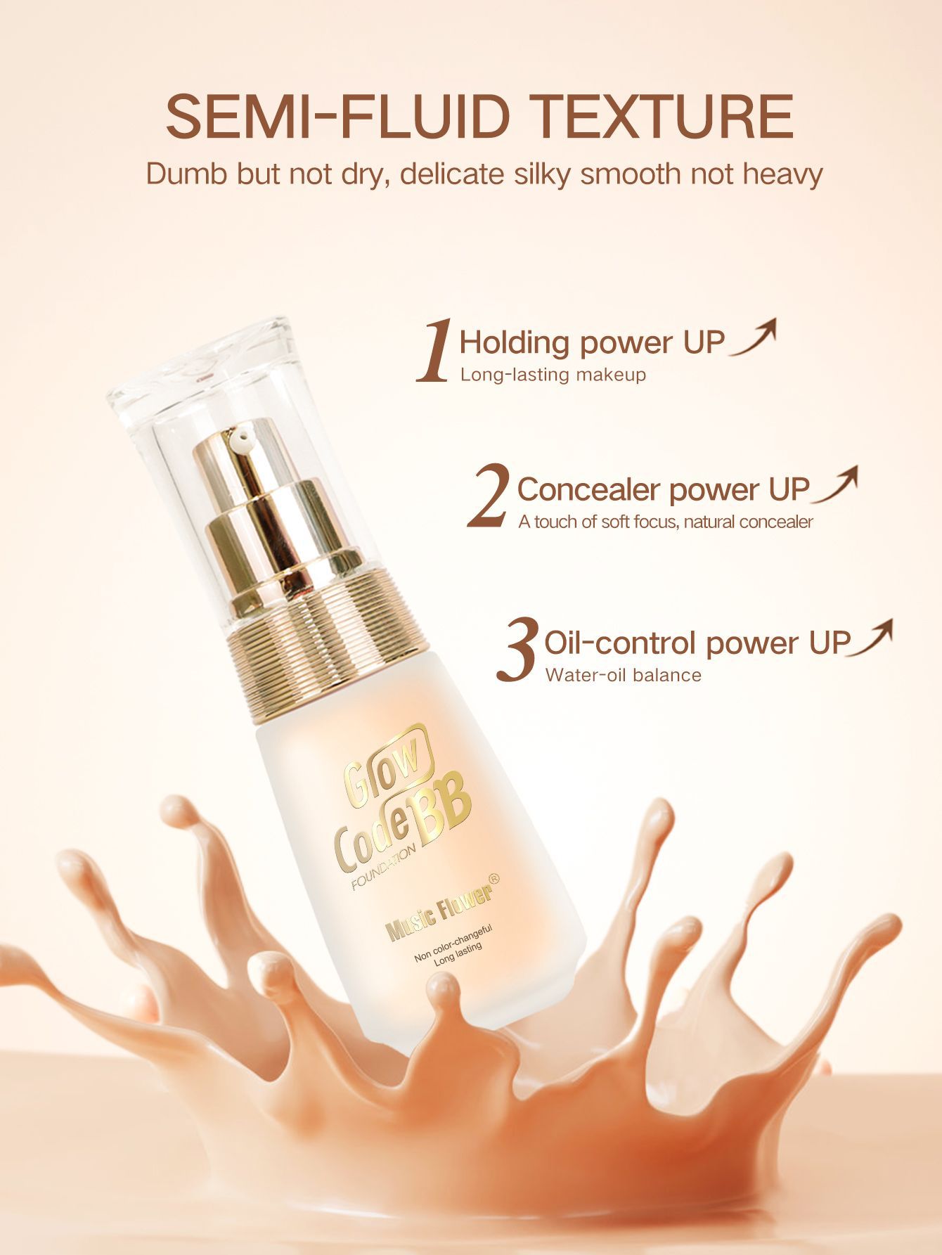 Music Flower沁彩の持続的な化粧は、傷のない明るい肌のベルベットの輝きがあります。
