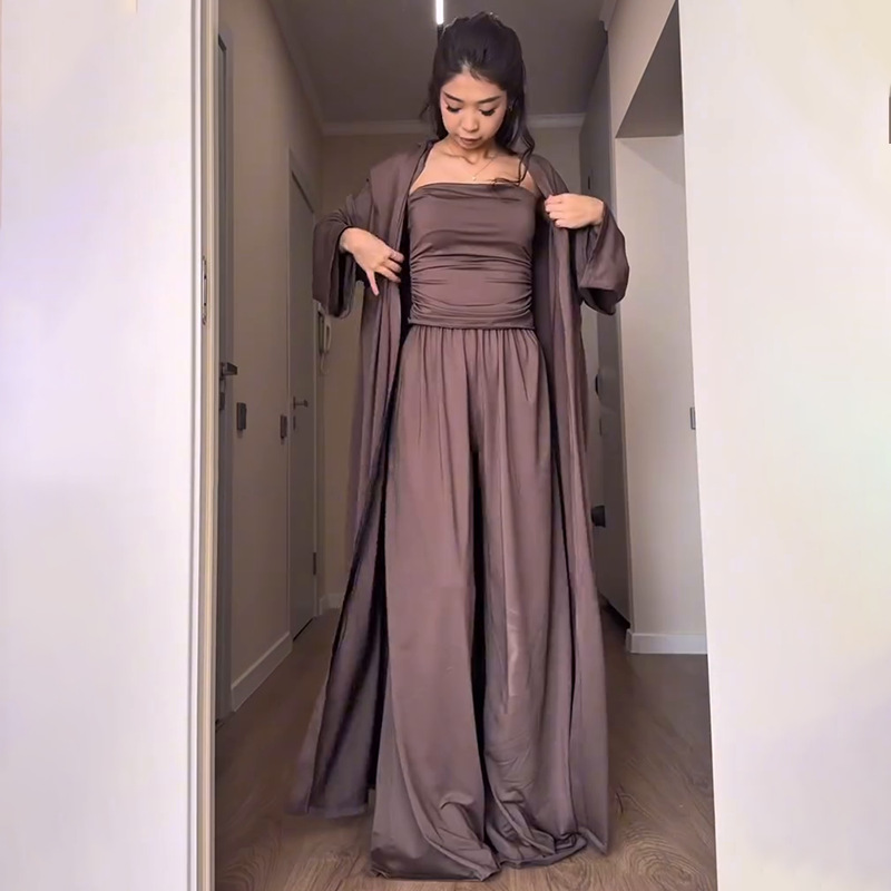 2025欧米のアマゾンの婦人服のクロスボーダーの外国貿易の新型の純色の長袖の上着は胸の上着のロングスカートのスーツを塗ります。