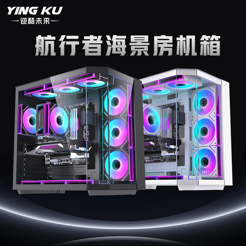 全景光效双硬盘台式电脑机箱三面钢化玻璃M-ATX电竞机箱