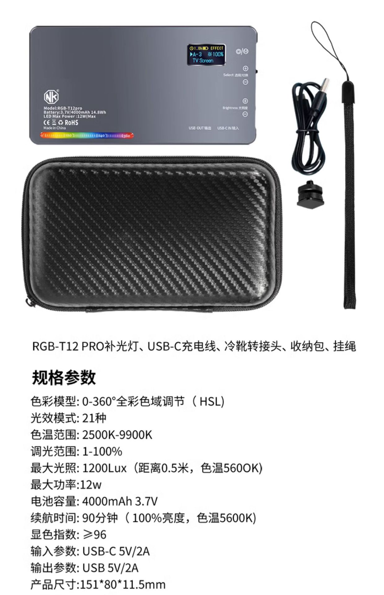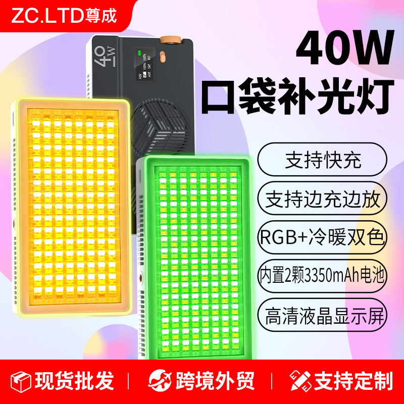 40W口袋补光灯全彩RGB补光灯直播探店摄影灯vlog拍照拍视频打光灯