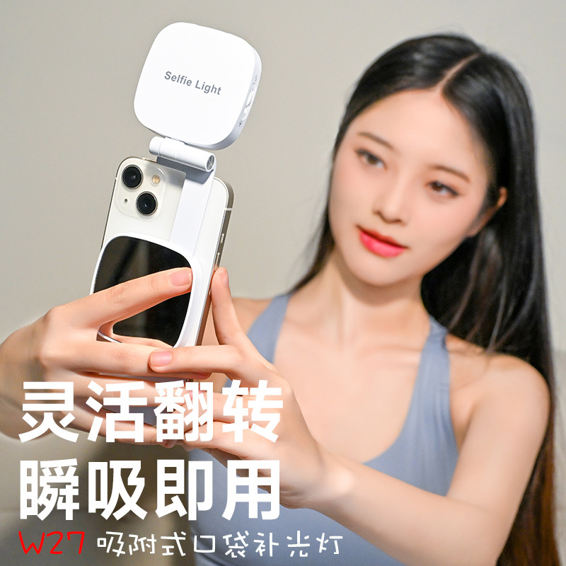 ライブ配信、自撮り、携帯電話撮影用のポータブル補助光、磁気吸着式RGBポケット補助光
