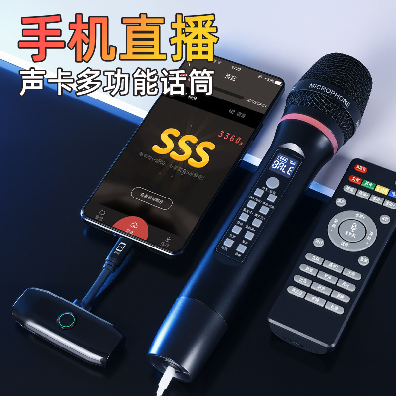 朗声携帯電話ライブカラオケ用マイク、ユニバーサルK歌エンターテイメント司会用、リバーブ機能付き、専用充電式ワイヤレスマイク