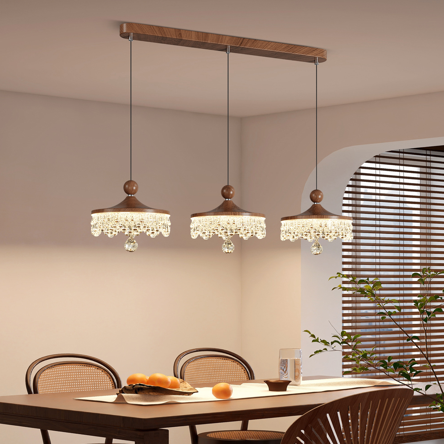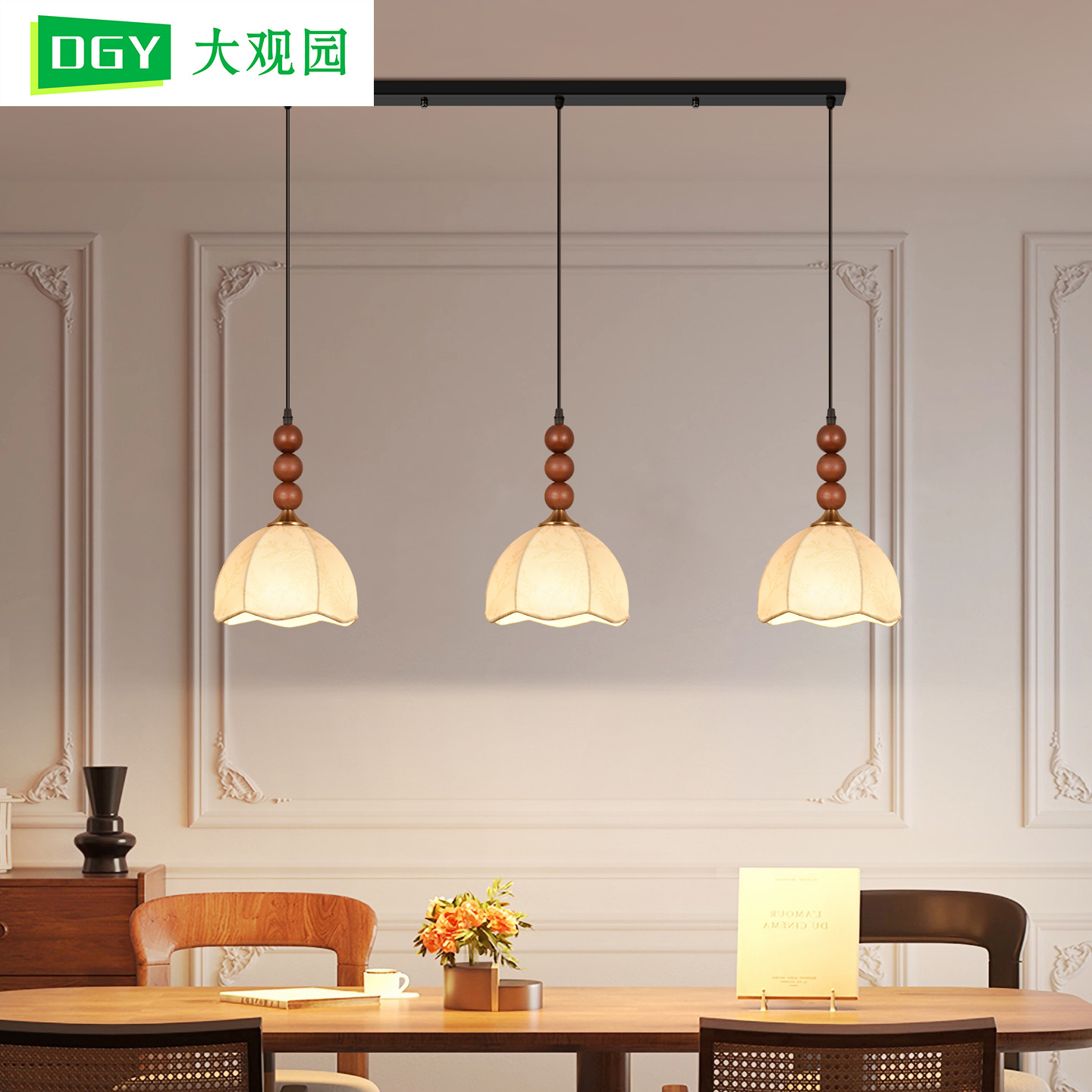 餐厅吊灯北欧家用餐桌饭厅吧台灯具中古风复古木艺三头餐厅灯L271
