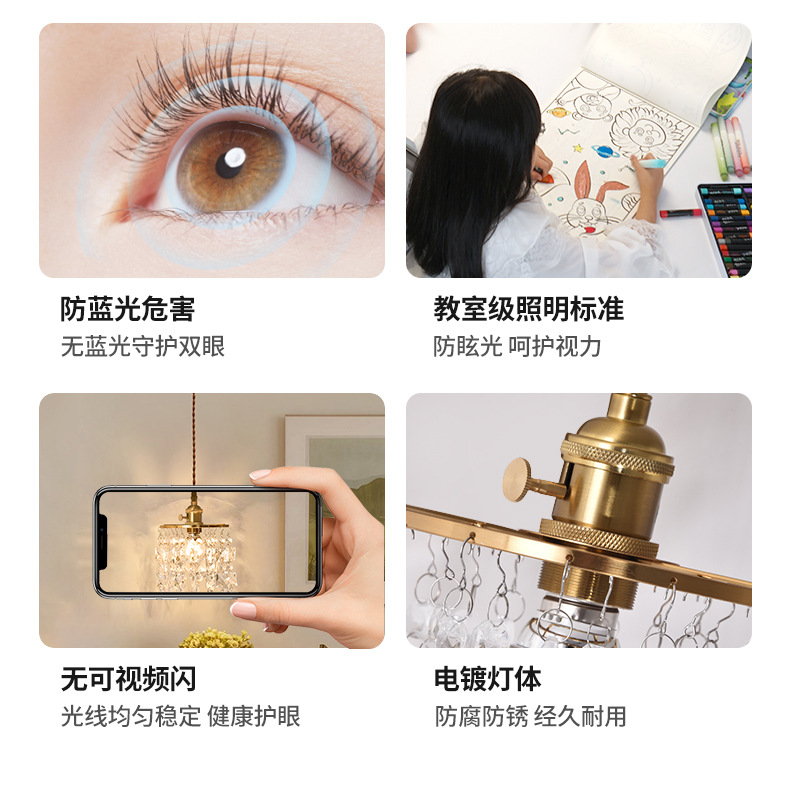 卧室护眼轻奢床头吊灯意式全光谱悬浮自由升降水晶艺术吊线灯125L