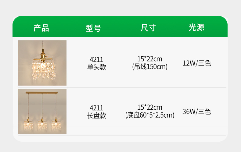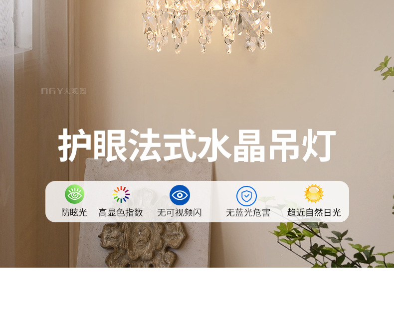 Daguanyuan ベッドサイドシャンデリアフレンチライト高級和風レトロバーレストランシャンデリアクリスタルガラス寝室ランプ 485L