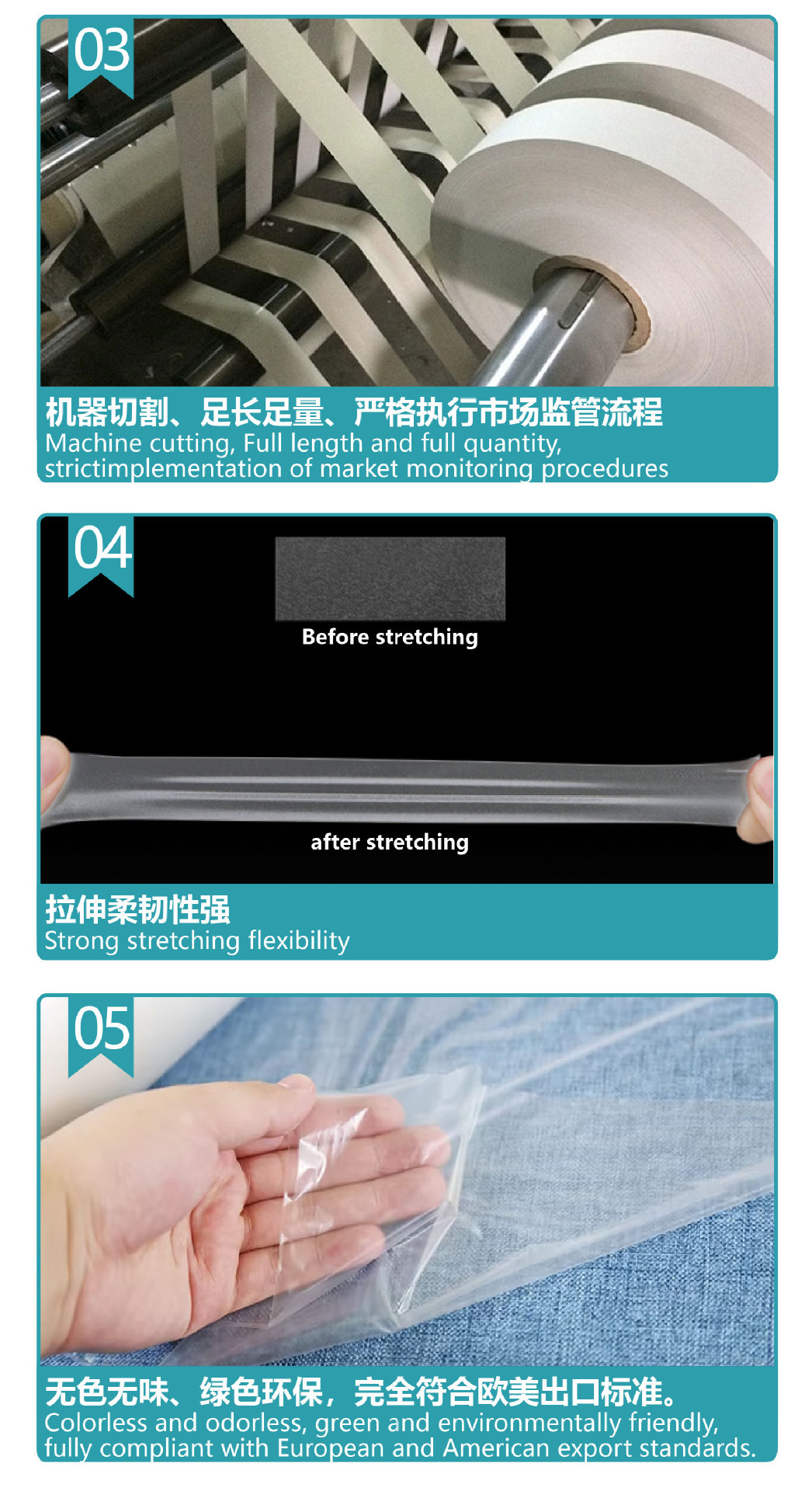 TPU熱溶着接着フィルム、痕跡のない生地、高温高弾性、両面高透明、熱溶着衣料用生地接着・複合材