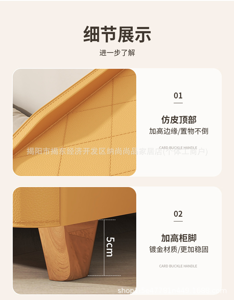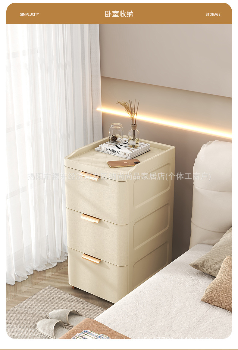轻奢皮纹收纳柜卧室床头柜家用储物柜客厅多层零食柜可移动置物架