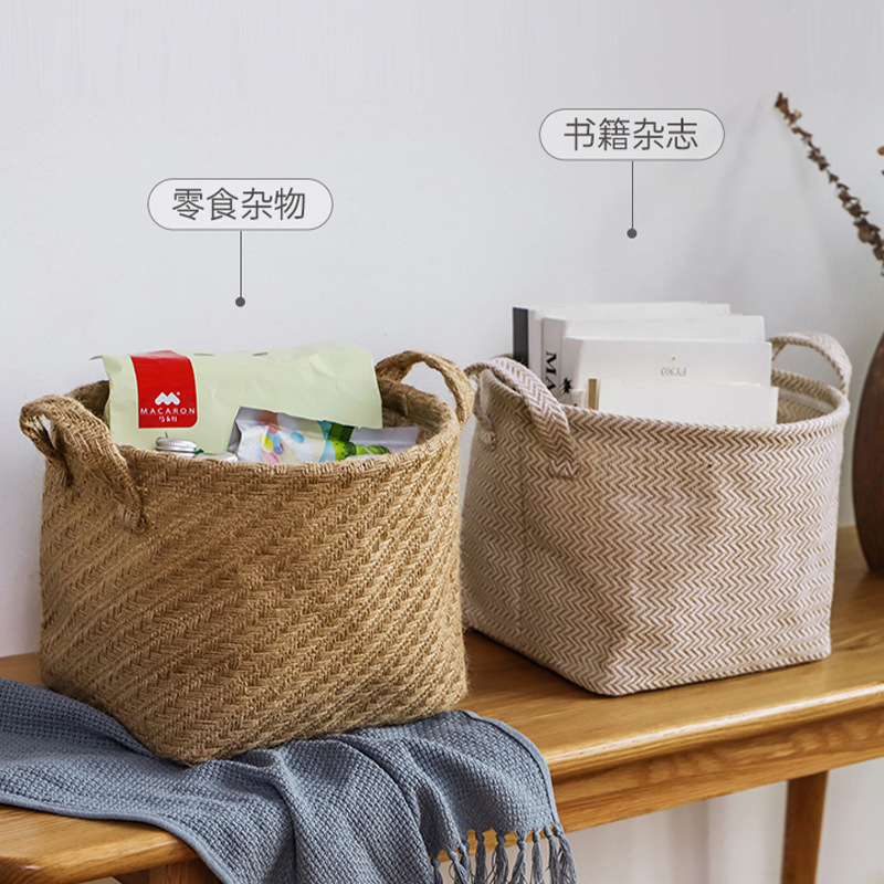 ジュートハンギングバスケット小型デスクトップ雑貨収納バスケット化粧品収納バケツ生地ペンホルダー壁掛け収納バスケット