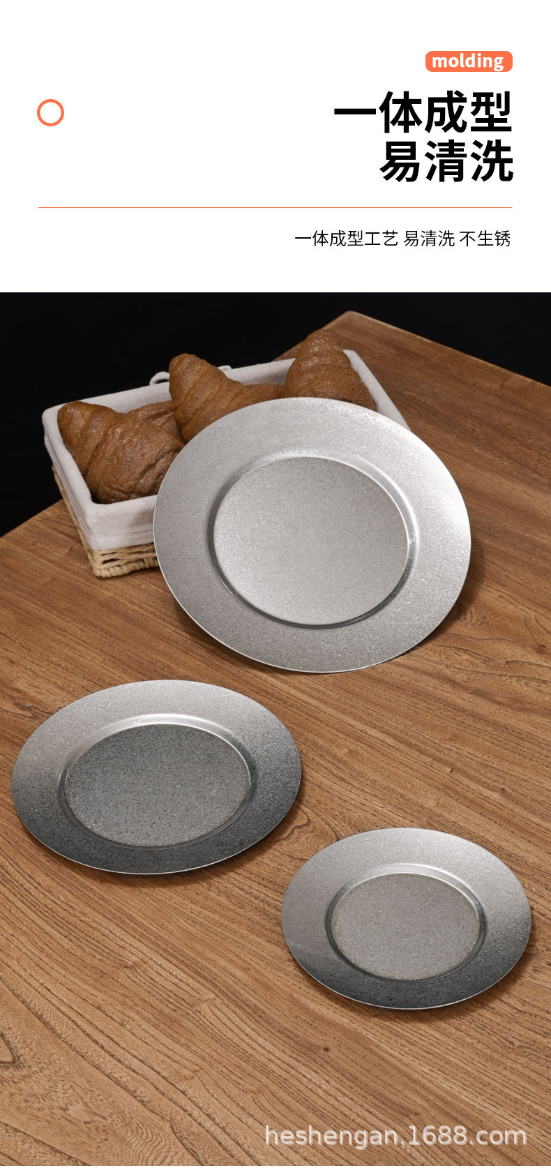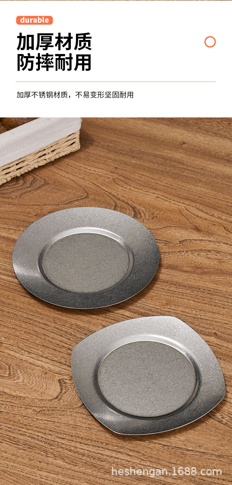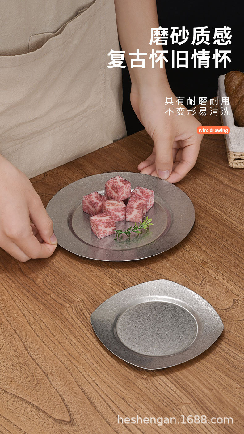 レトロ日本式ステンレスバーベキュー皿工業風平底トレー浅皿ケーキデザート皿吐骨皿