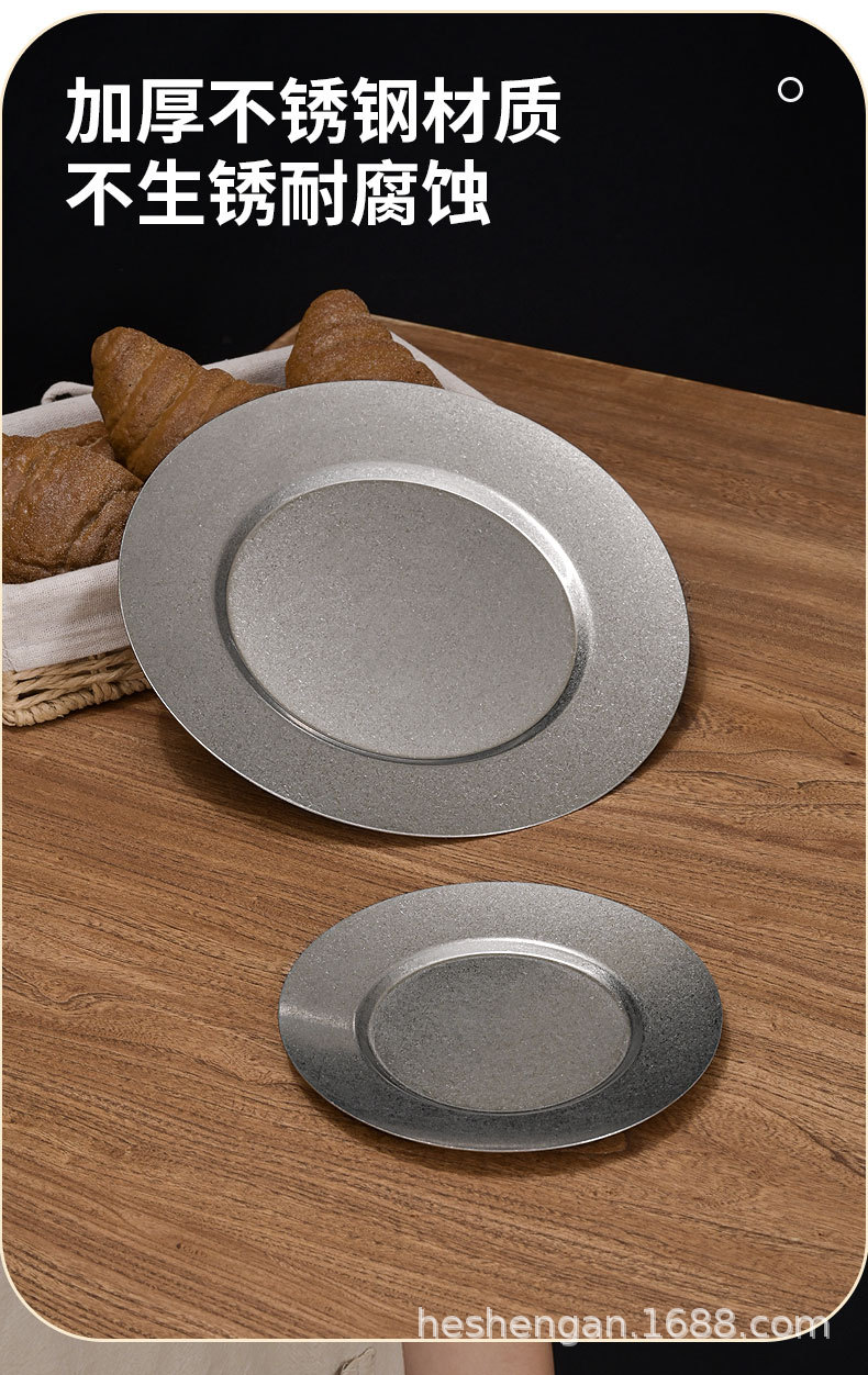 复古304不锈钢圆碟做旧小吃碟商用烤肉小菜碟酱料浅盘小托盘骨碟