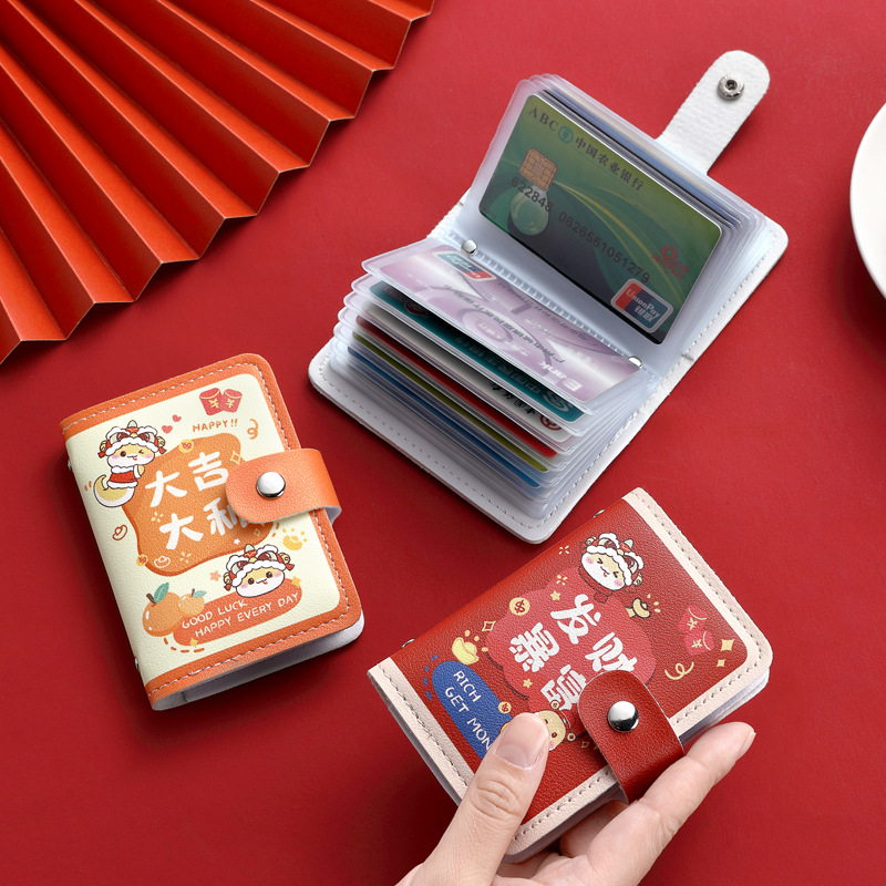 新年かわいいカードホルダー女性用、パーソナライズされた大容量、複数のカードスロット、消磁防止IDカードホルダー、男性用インターネットセレブカードホルダー
