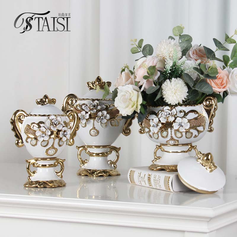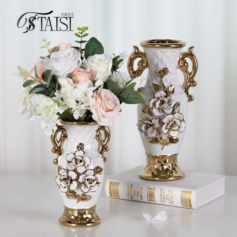 陶磁器の新型の花を送る電気めっきのデカールの金色の花瓶のヨーロッパ式の花は花瓶の工芸品を挿して飾って陶磁器を飾ります。