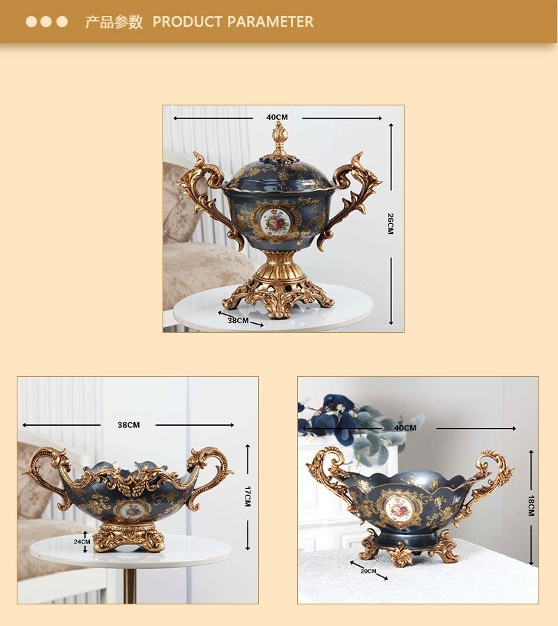 爆発的な家庭装飾品アメリカのレトロな果物皿家庭用リビングルームのお茶の置物の大きいサイズの豪華な果物皿