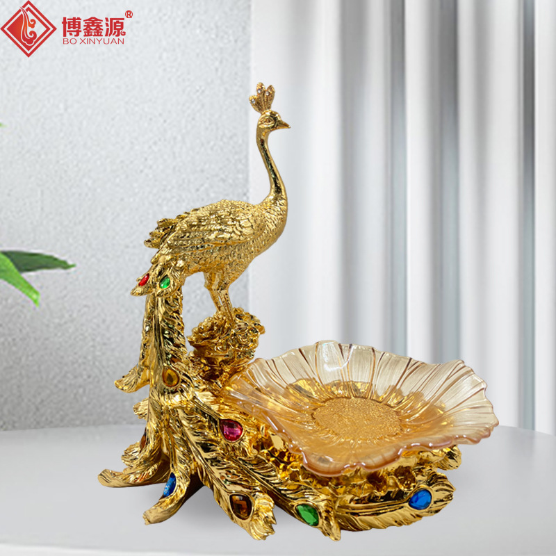 ヨーロッパ式の金色の孔雀の果物の皿の家庭用の客間のお茶のいくつかの創意の果物の皿の軽くて豪華で精巧な結婚の皿の客間の置物
