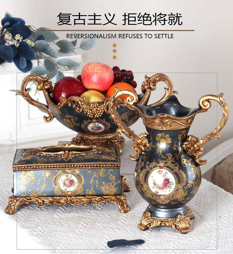 ヨーロッパ式樹脂花瓶果物皿灰皿ティッシュケースセット創意家庭装飾工芸品置物
