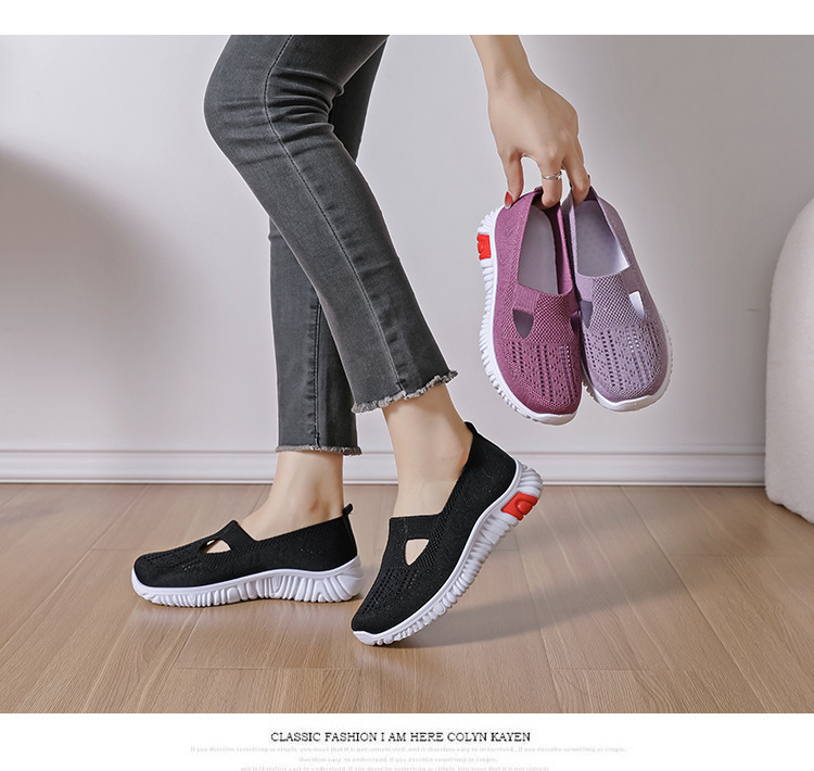 メーカー直販夏の新型通気網面飛織中高年ママ靴快適滑り止め女性広場ダンス靴