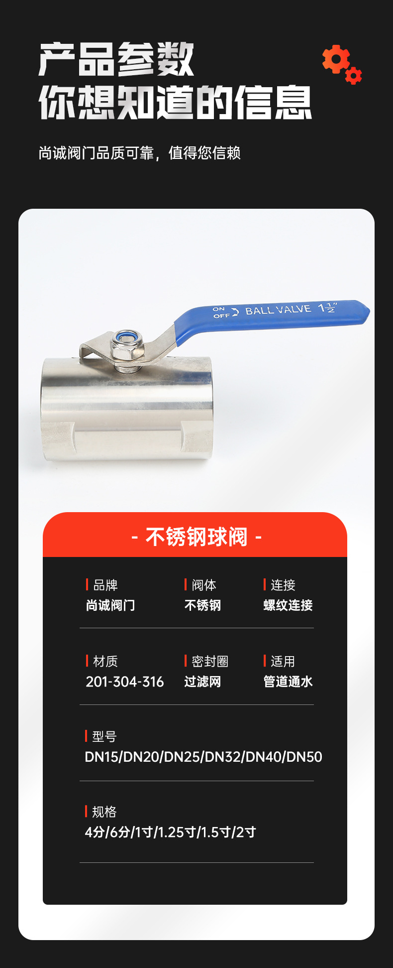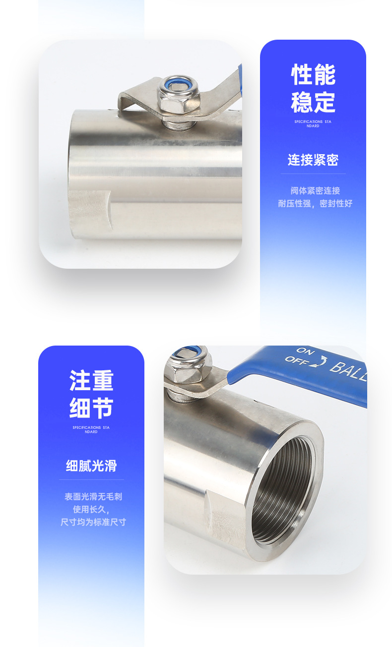 304ステンレス2枚式ボールバルブ2枚式内糸バックル調整ねじ山鋼バルブ4分6分1インチdn25