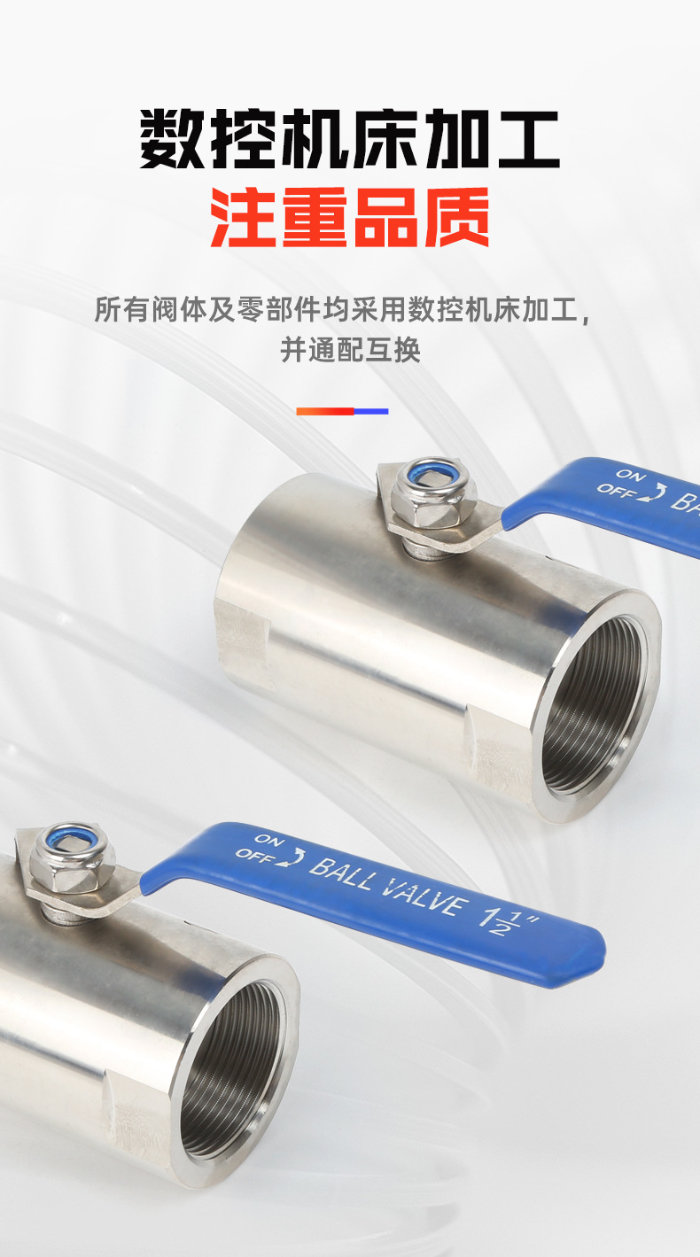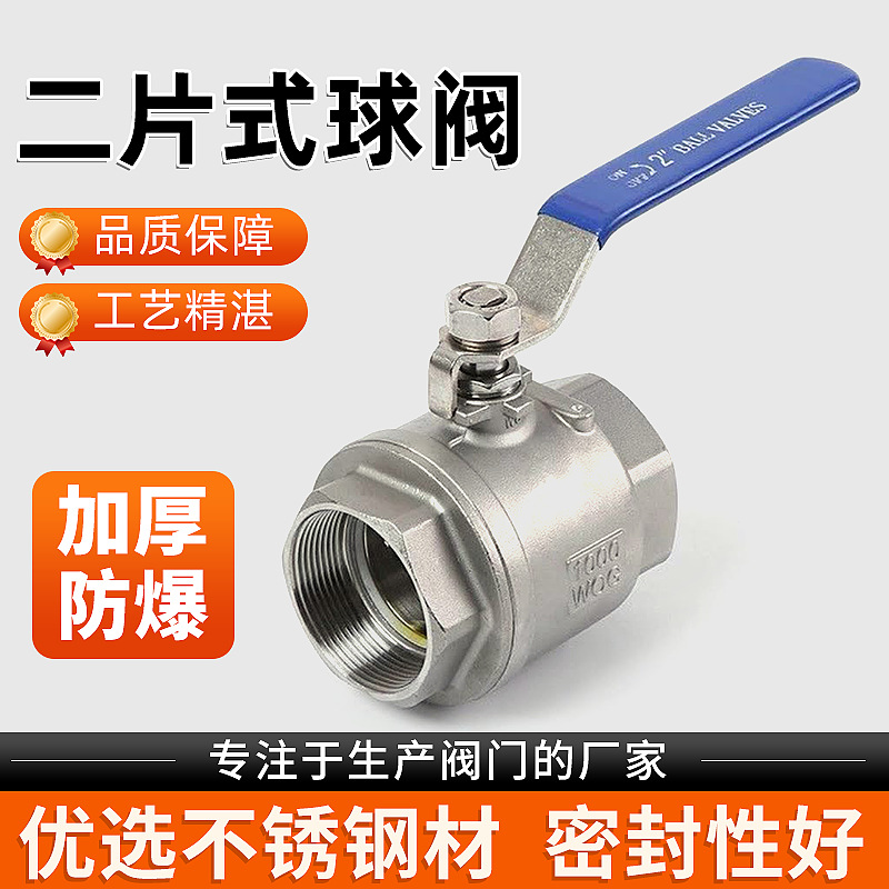304不锈钢二片式球阀开关内螺纹两片式丝扣2PC阀门开关4分6分1寸