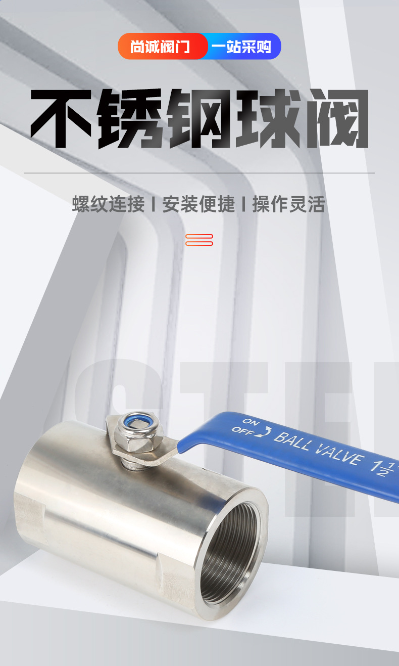 304不锈钢国标一片式内丝球阀4分1寸DN15 内丝水管F316开关阀门