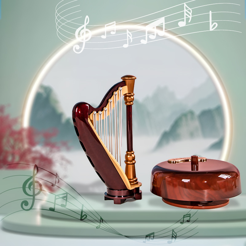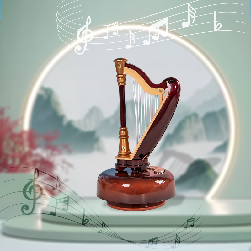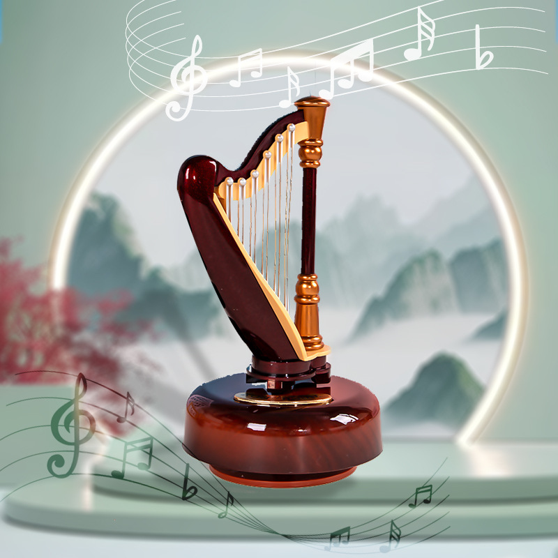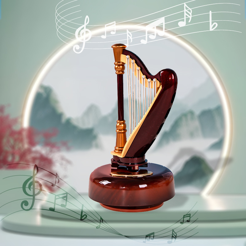 レトロなトランペット月琴ハープオルゴール創意楽器模型置物音楽付き学生友達子供プレゼント