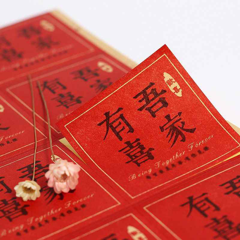 中式复古吾家有喜红色贴纸喜糖盒不干胶订婚婚礼喜酒瓶结婚喜字贴
