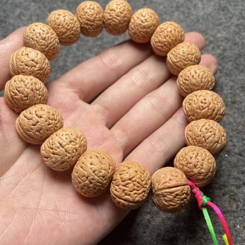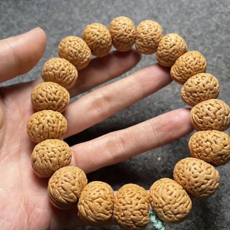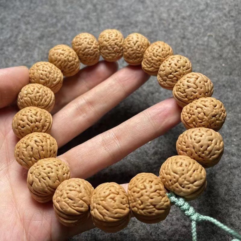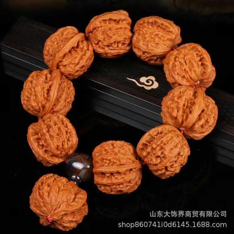 天然野生脳紋桃核手串は数珠男菩提原種円珠文を持ってクルミのブレスレットを遊んでいます。