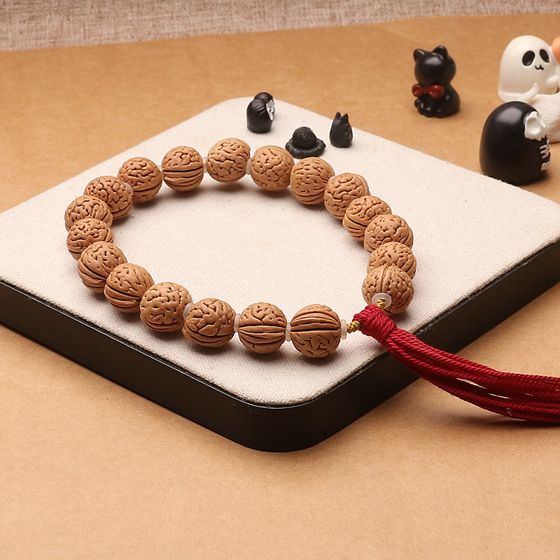 天然野生の秋のクルミの木製ブレスレット、オリジナルカラーの麻クルミの木製ブレスレット、菩提樹白檀の数珠ブレスレット
