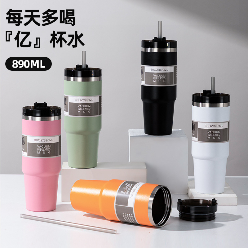 夏の保冷保温カップ新型大容量アイスカップ携帯カップ男性車載コーヒーカップストロー付きカップ