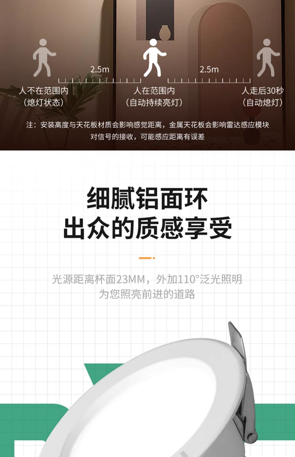 雷士照明レーダー & 人体感応ダウンライト家庭用スマート廊下通路穴ライト埋め込み式天井灯