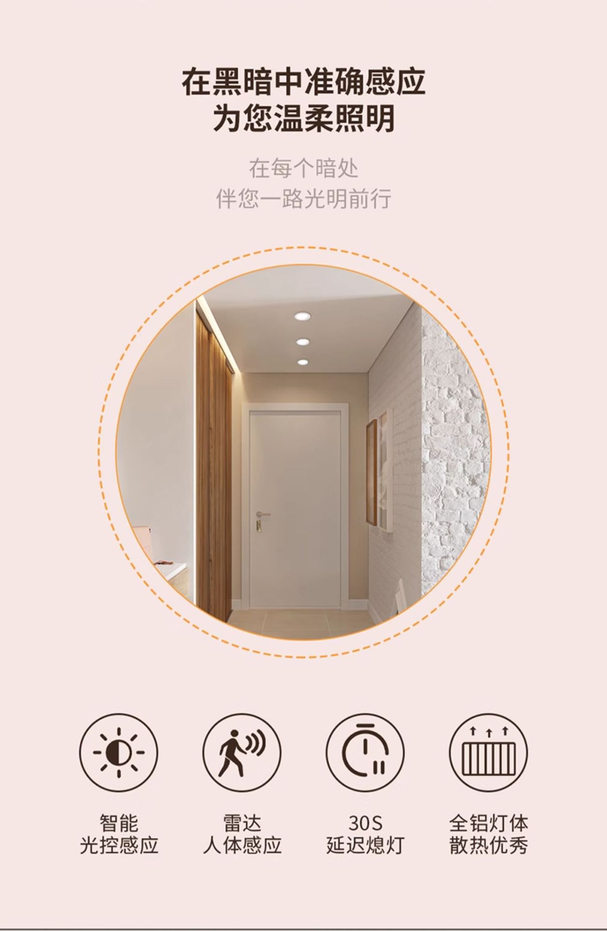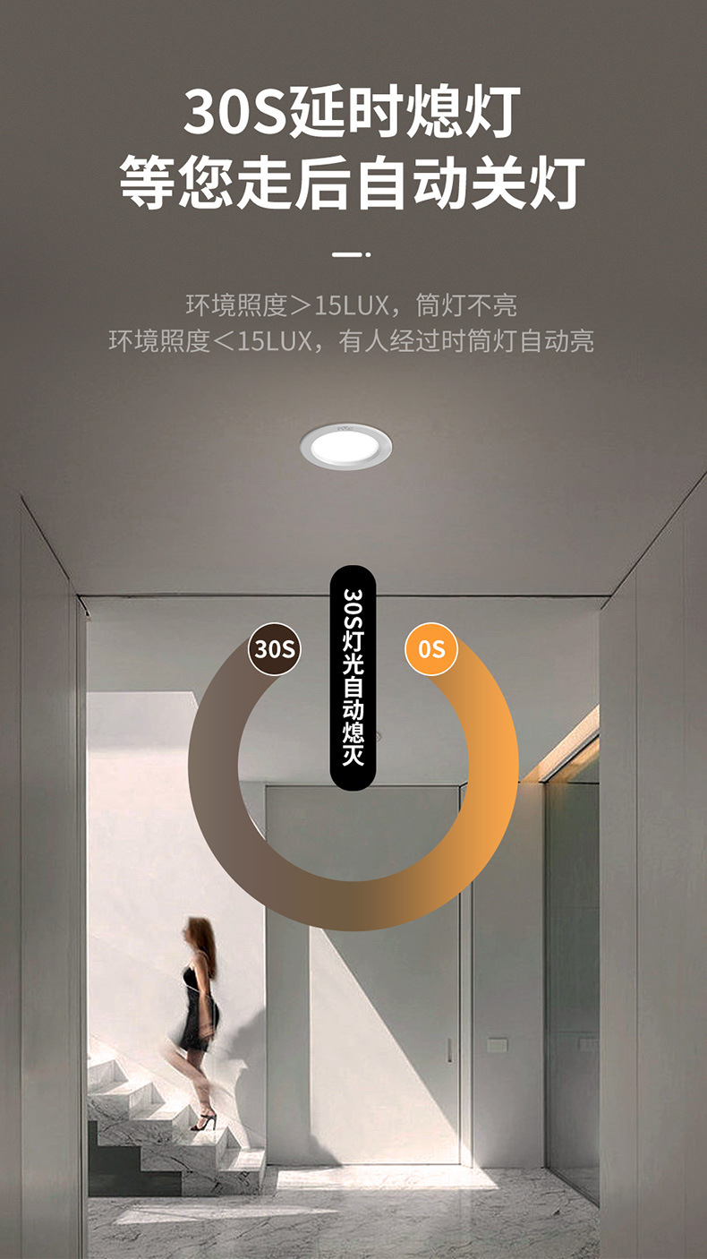 人体感応ダウンライト埋め込み式赤外線感応スポットライト廊下爆型通路穴ランプ階段音制御ダウンライト