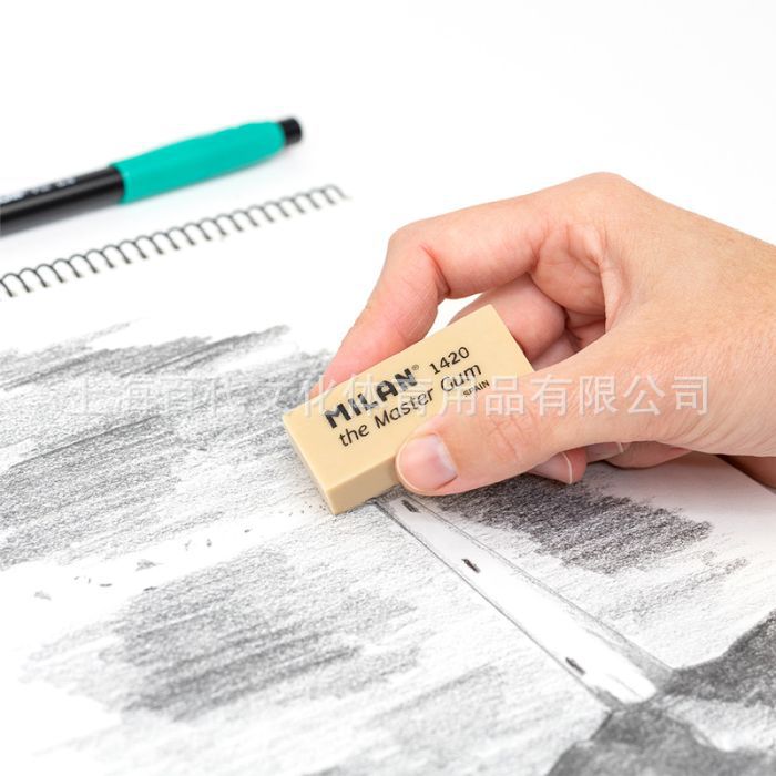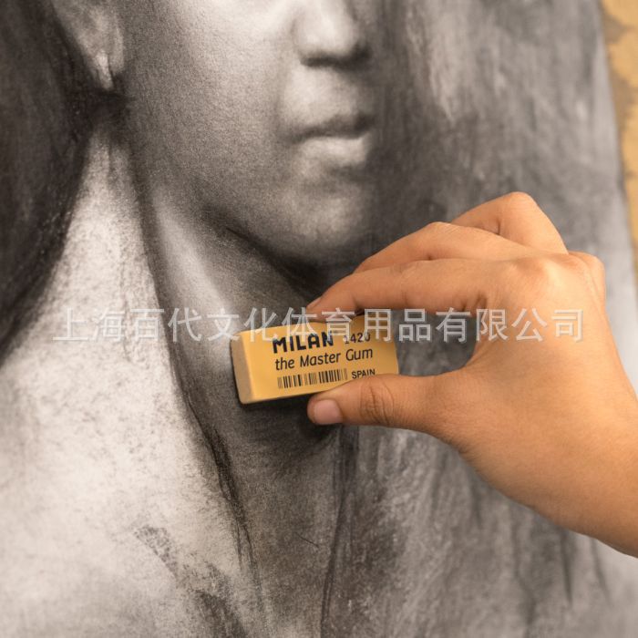 专为美术设计的特殊橡皮擦,具有强大的吸附能力,能有效去除木炭和石墨。使用时无需用力按压纸张,即可轻松擦除,形成细腻的橡皮屑。也可用于擦除或涂抹木炭画中的痕迹。由合成橡胶制成,独立包装。橡皮擦尺寸:5.5 x 2.3 x 1.3 厘米。MILAN橡皮擦自1918年起在西班牙制造。
