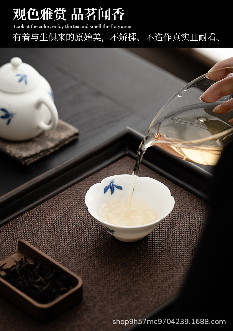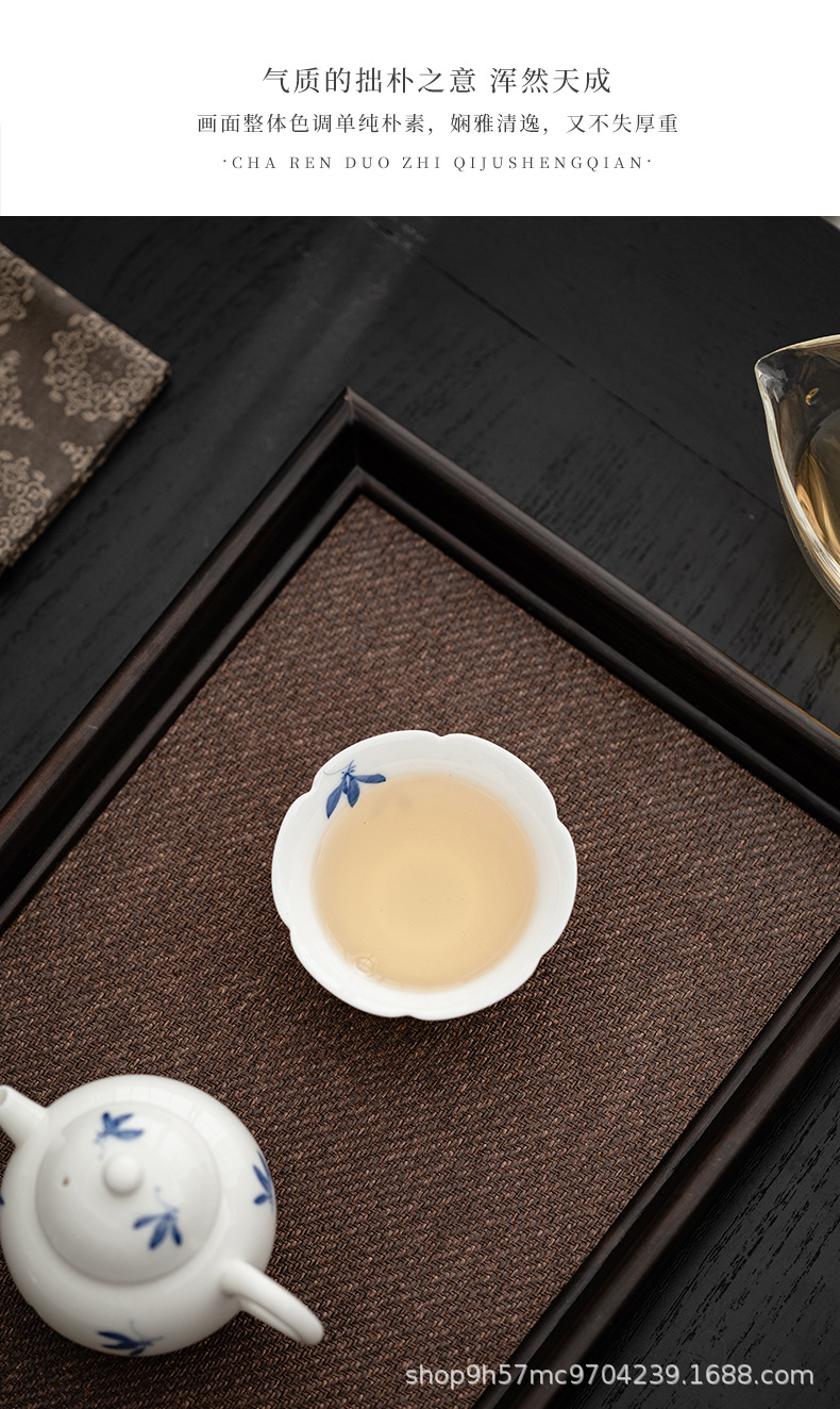 Ni Ren Shu 高白磁手描き小さな青い芽マスターカップ釉下色花びらひょうたんマスターカップ女性シングルカップ