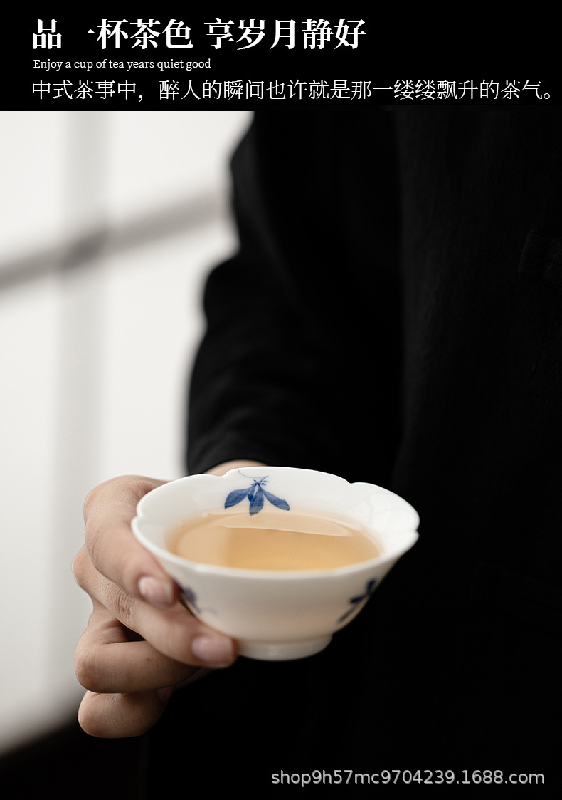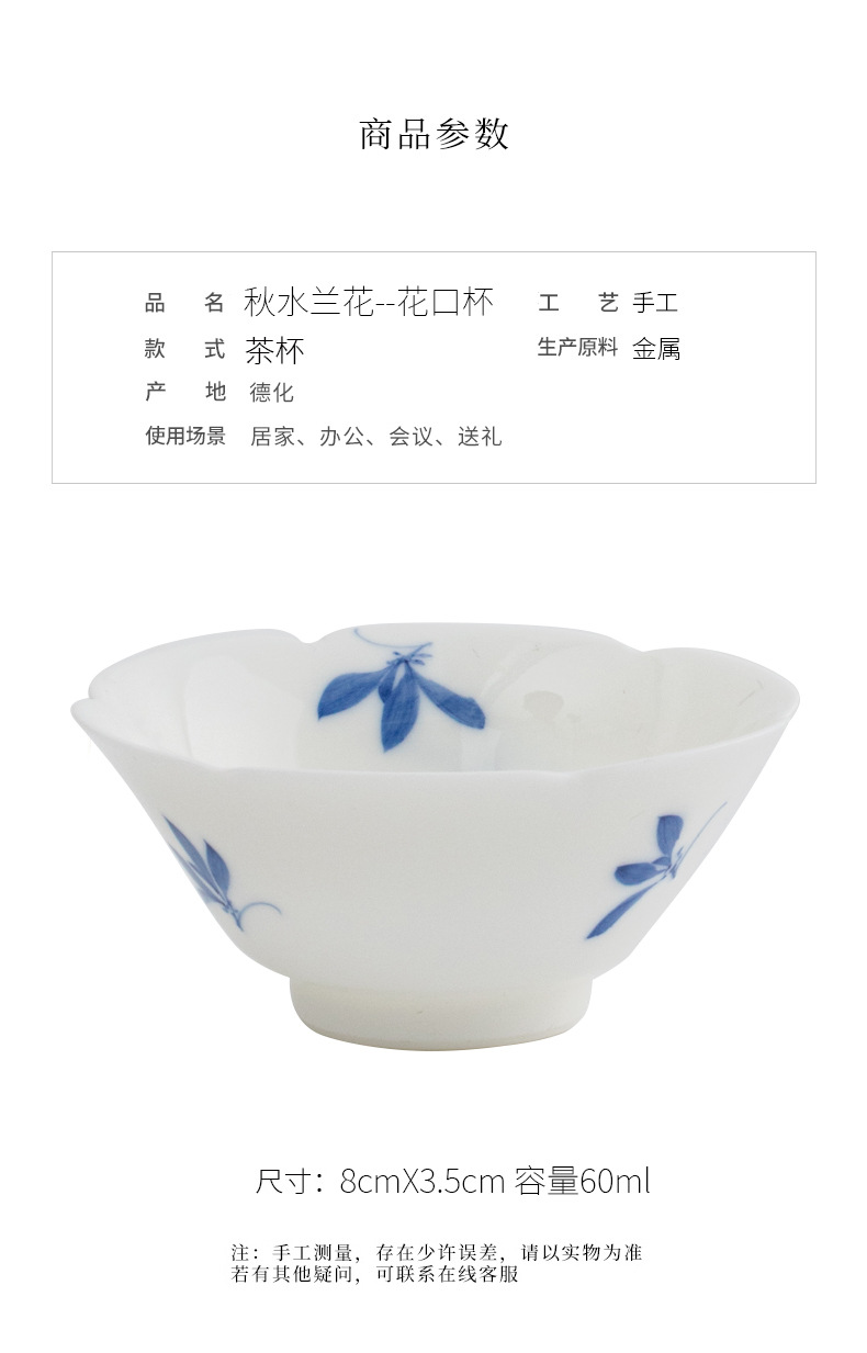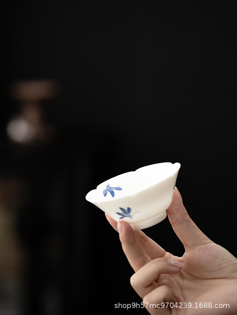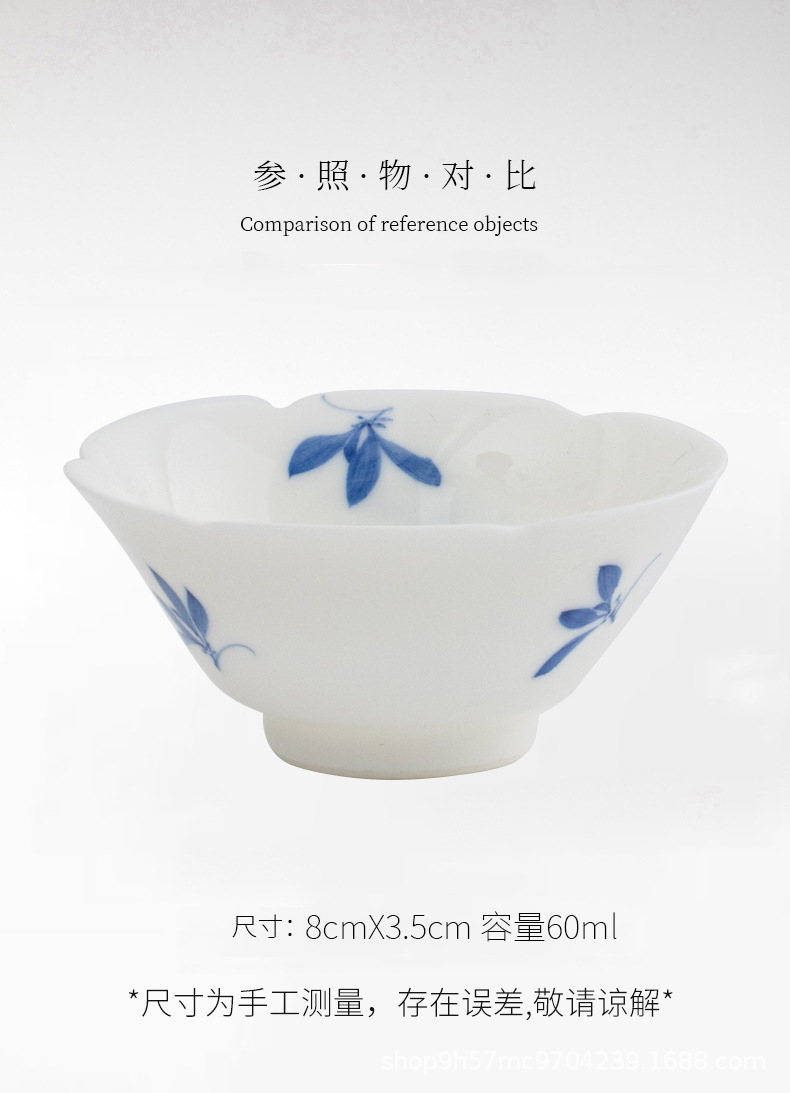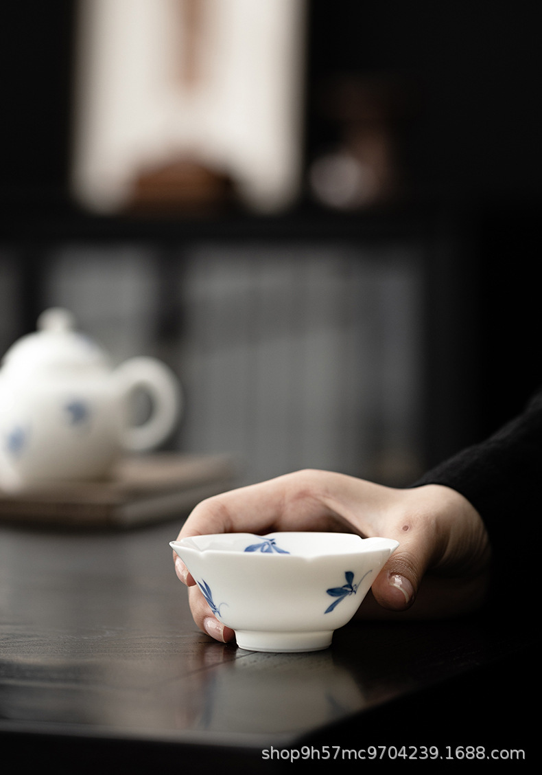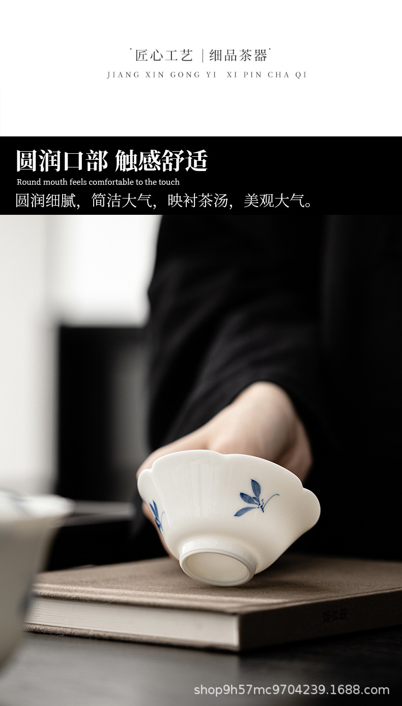 禧マグネシウム手描き蝶蘭白磁器品茗杯花口杯家庭用陶磁器お茶カップ個人用シングルカップ