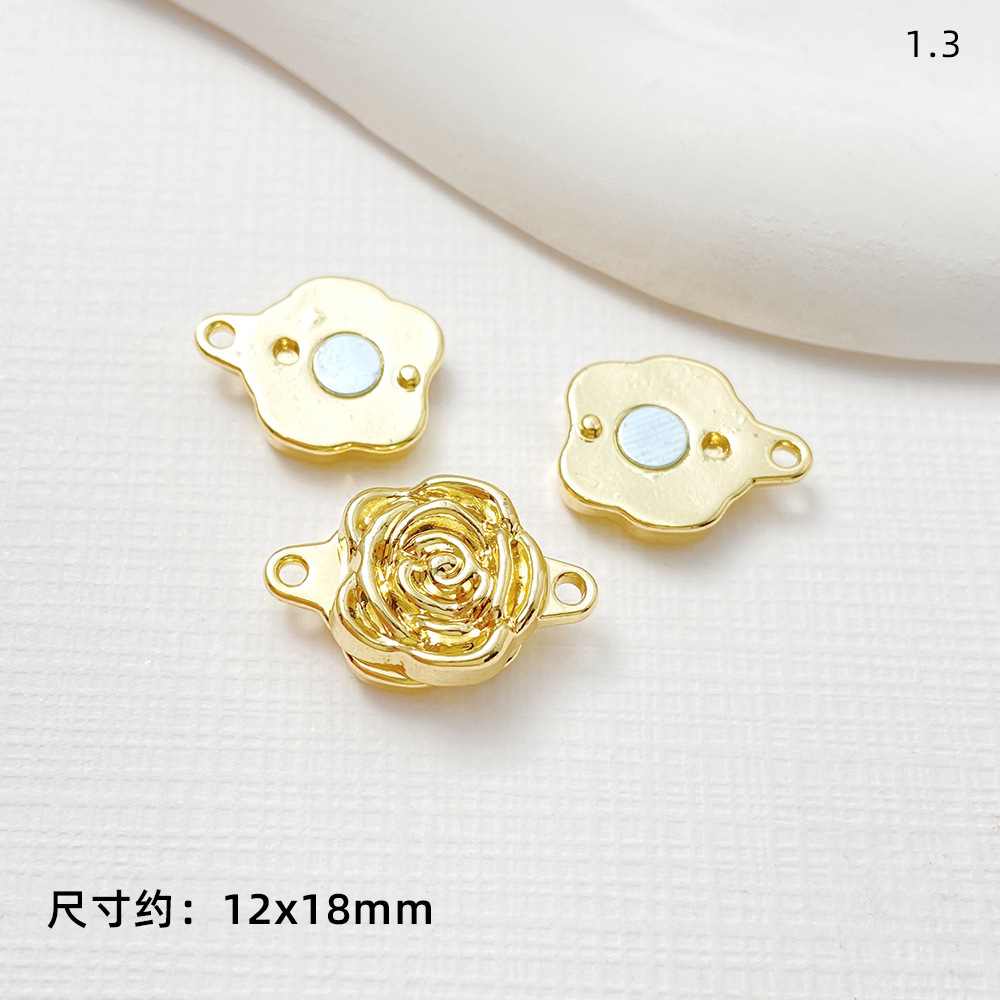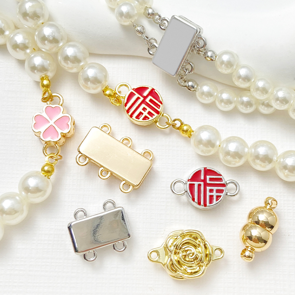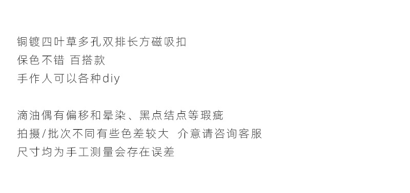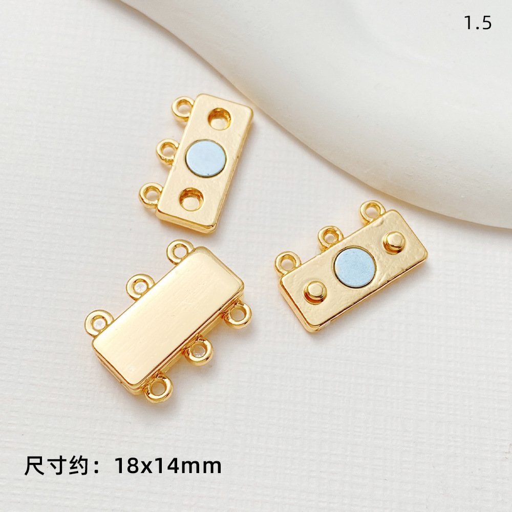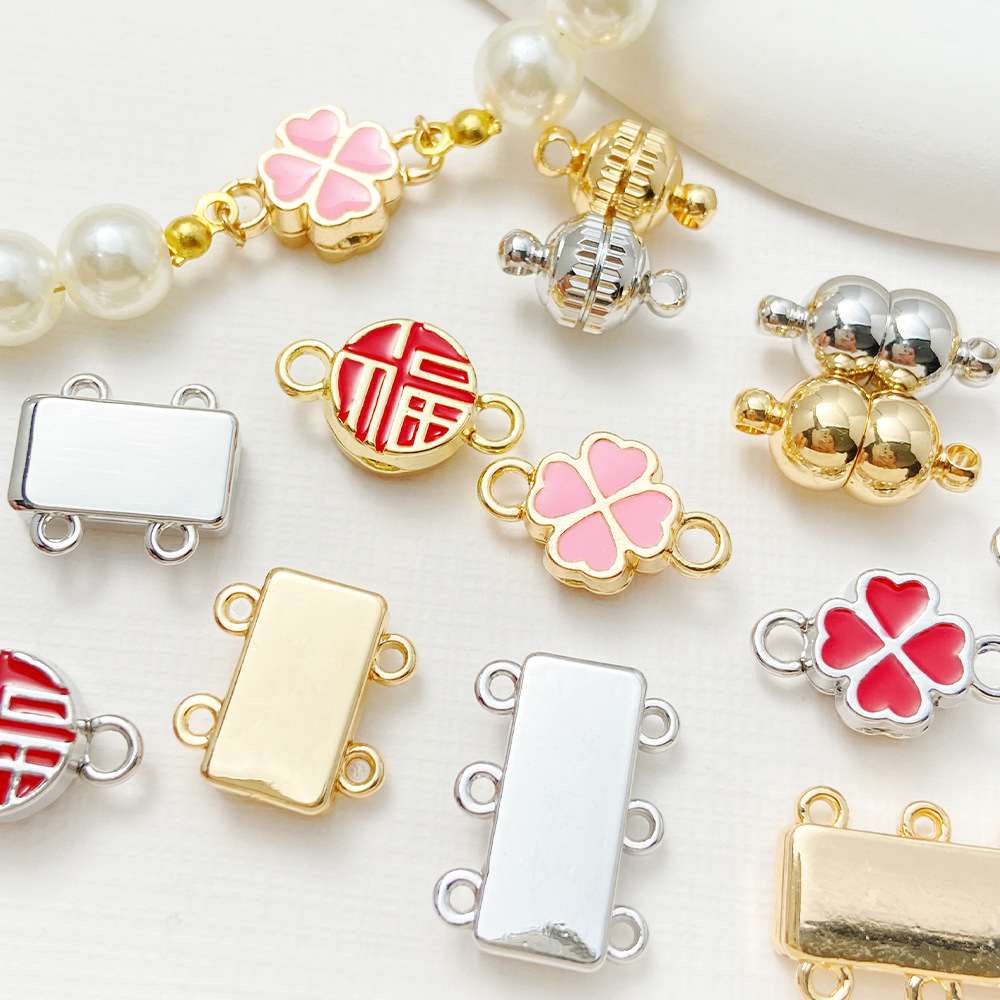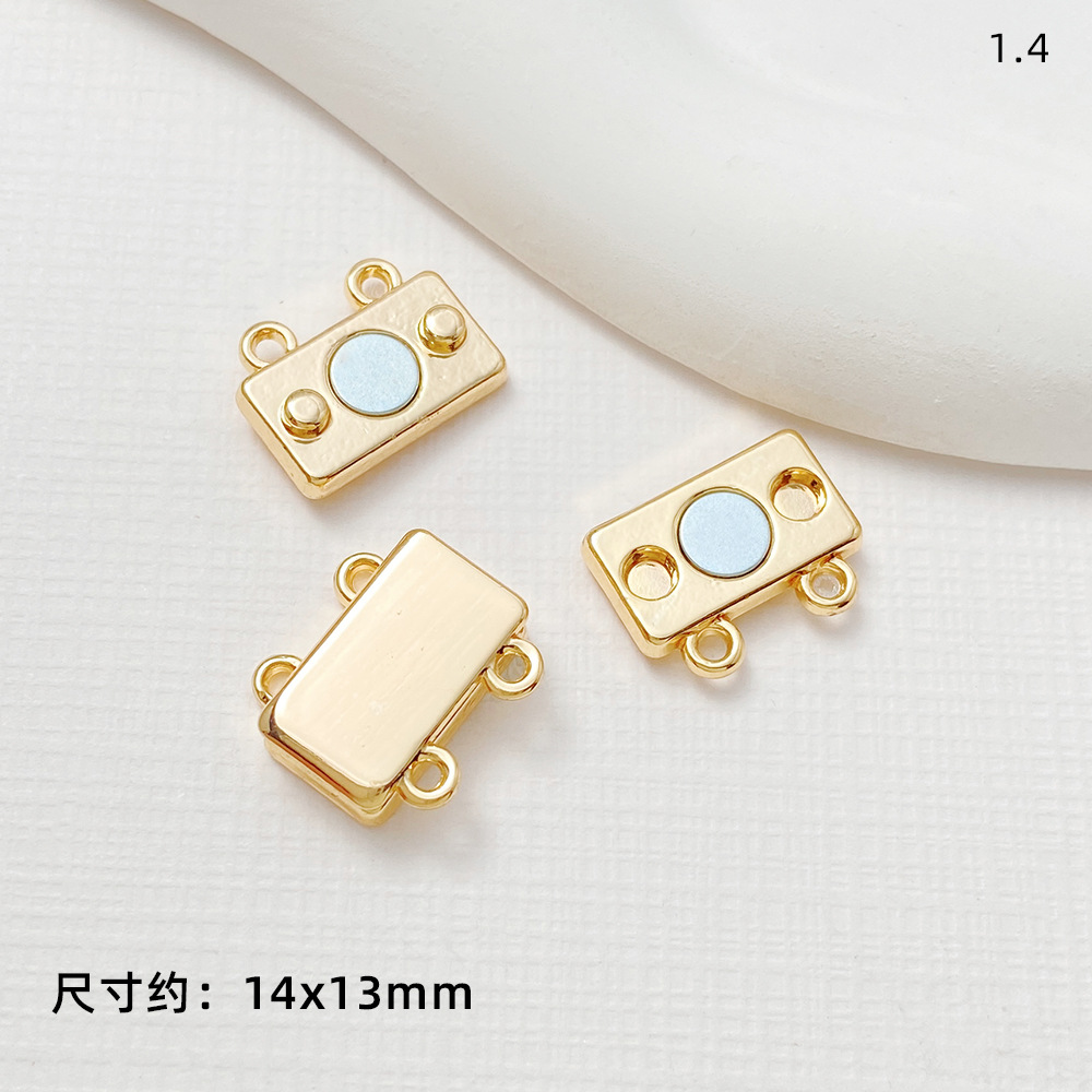 銅メッキ真金四葉草福字多孔双列長方形磁気吸引ボタン締め尾ボタン接続ボタンdiyアクセサリー部品