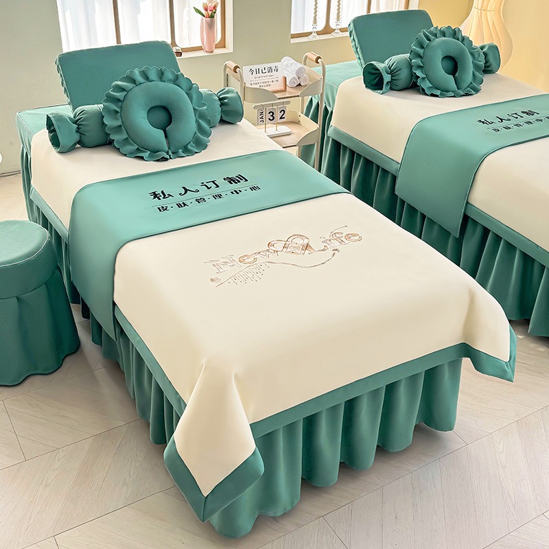 美容ベッドカバー四点セット純色軽豪華美容院専用四点セット四季通用穴付きシーツ