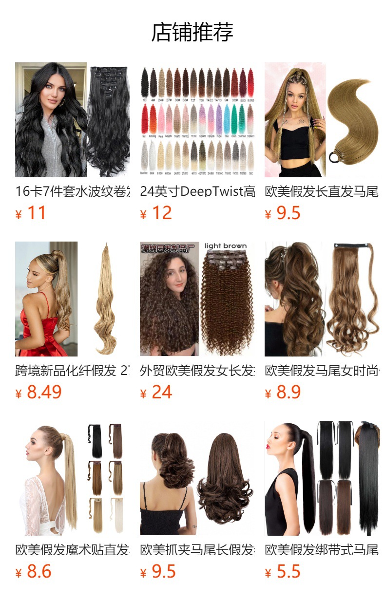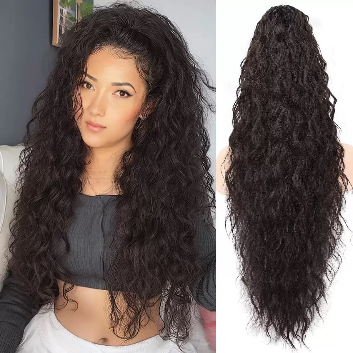 欧美假发30inch抓夹马尾水波纹长卷发蓬松玉米烫亚马逊马尾辫