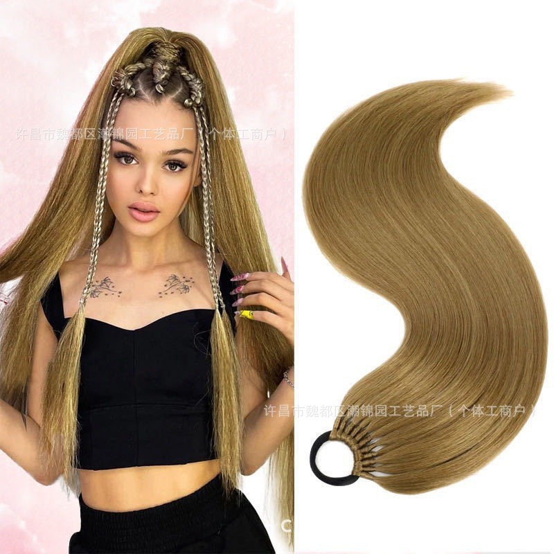 欧米風ウィッグ女性用ポニーテールストレートヘアエクステ24インチ弾力ヘアピース合成ロングストレートヘアポニーテール化学繊維ヘアピース