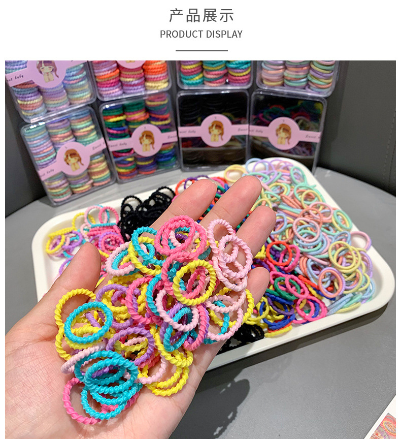 缶詰のキャンディー色の使い捨ての小さい皮の筋の子供の高弾力は髪のゴムの赤ちゃんを傷つけません。